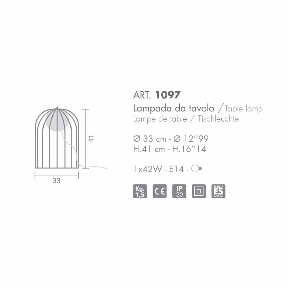 Kluvì is een tafellamp bestaat uit een metalen kooi en een bol in melkwit geblazen glas. Afwerking: gepolijst koper; voorbereid voor de 'utiizzo 1 42W - E14.