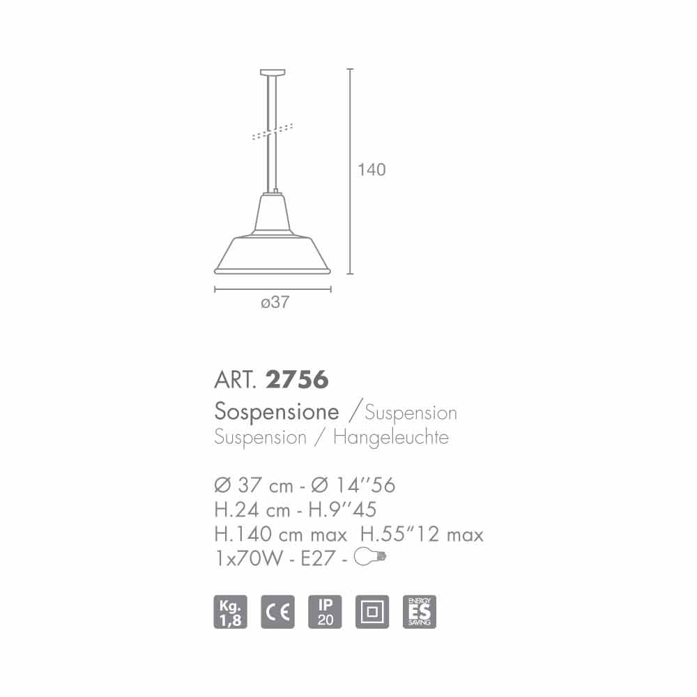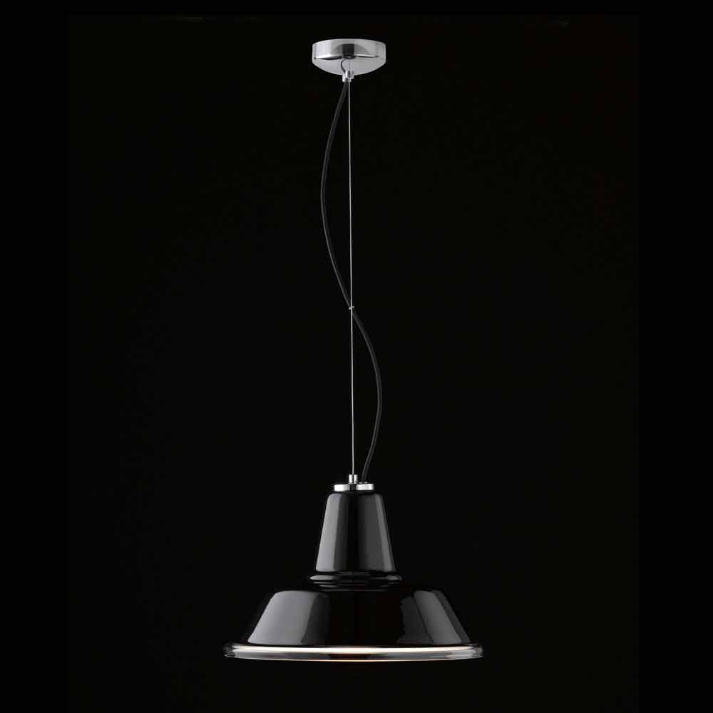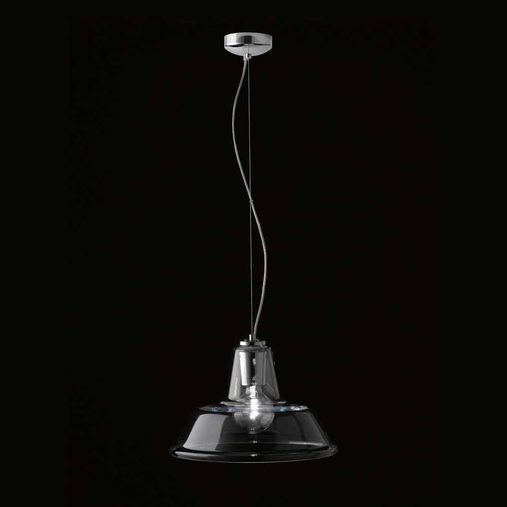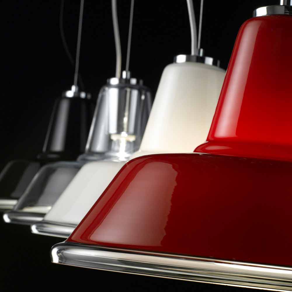 Lampara hanglamp van riconoscibie industrieel ontwerp, gemaakt door een speciaal glas geblazen diffuser. De afwerkingen zijn: transparant, wit, zwart of rood, met chromen frame. E 'ontworpen voor het' gebruik van een lamp 70W E27.