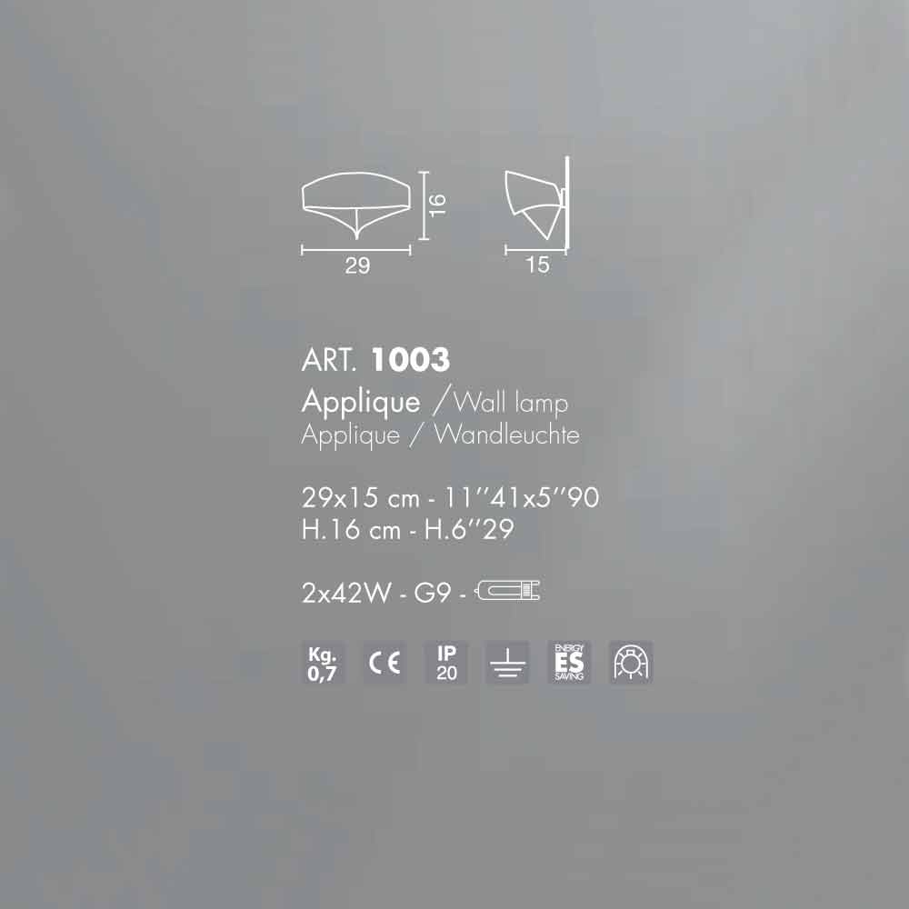 Schild is een wandlamp ontworpen uitgaande van een vormige stalen band bij sucessivamente laser gebogen met de hand om een onverdeeld element en omhullende creëren. Verkrijgbaar in diverse uitvoeringen en voorbereid op het 'gebruik met 2 x 42 W G9 lampen of LED 1x11W.