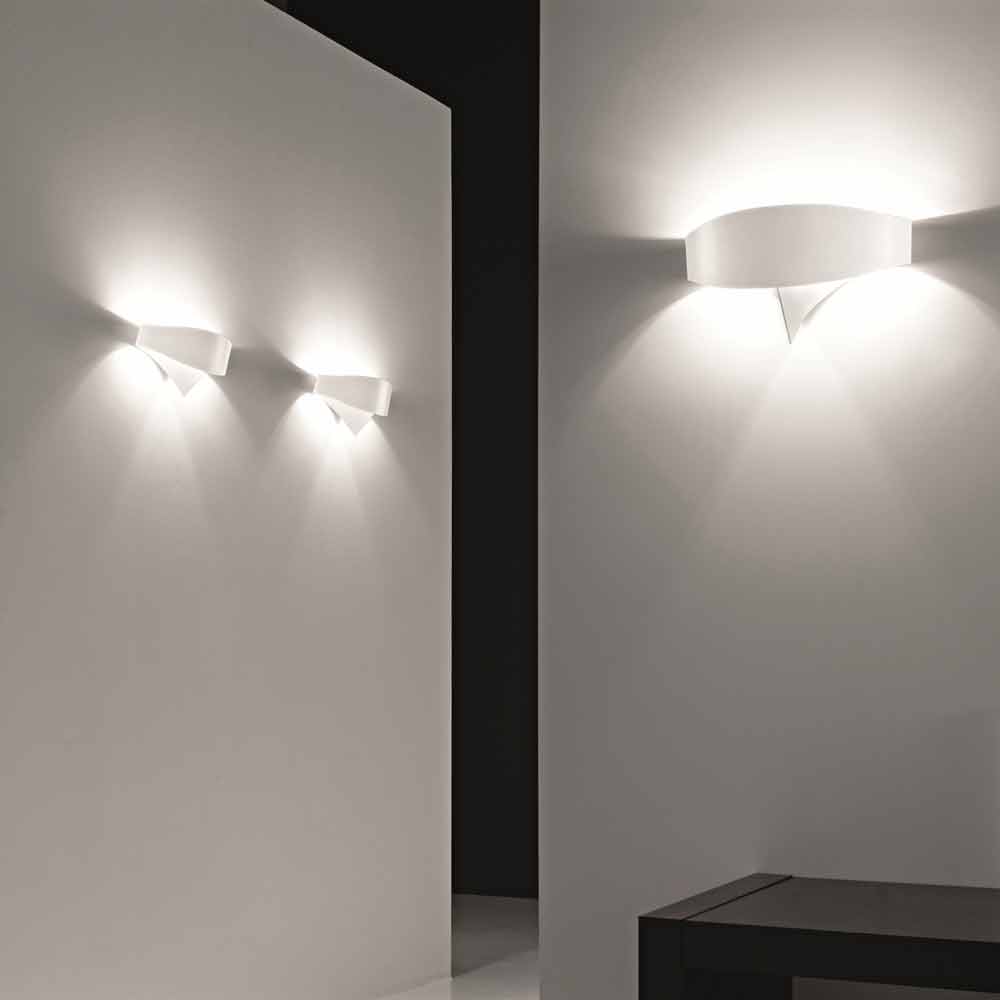 Schild is een wandlamp ontworpen uitgaande van een vormige stalen band bij sucessivamente laser gebogen met de hand om een onverdeeld element en omhullende creëren. Verkrijgbaar in diverse uitvoeringen en voorbereid voor gebruik met 2 lampen G9 42 W of LED 1x11W.