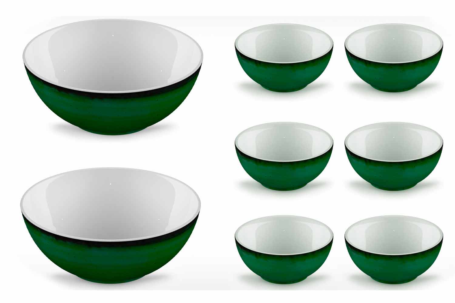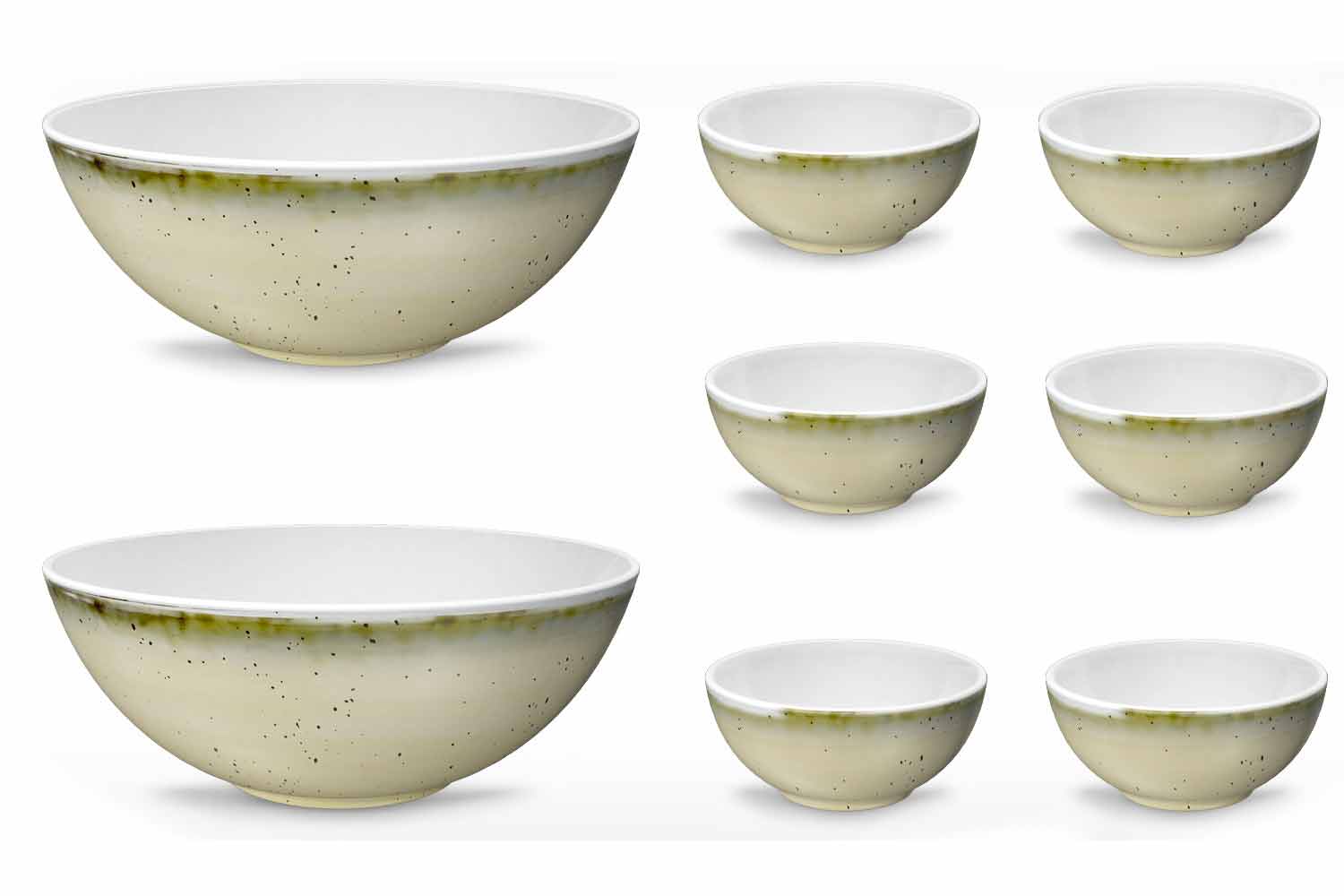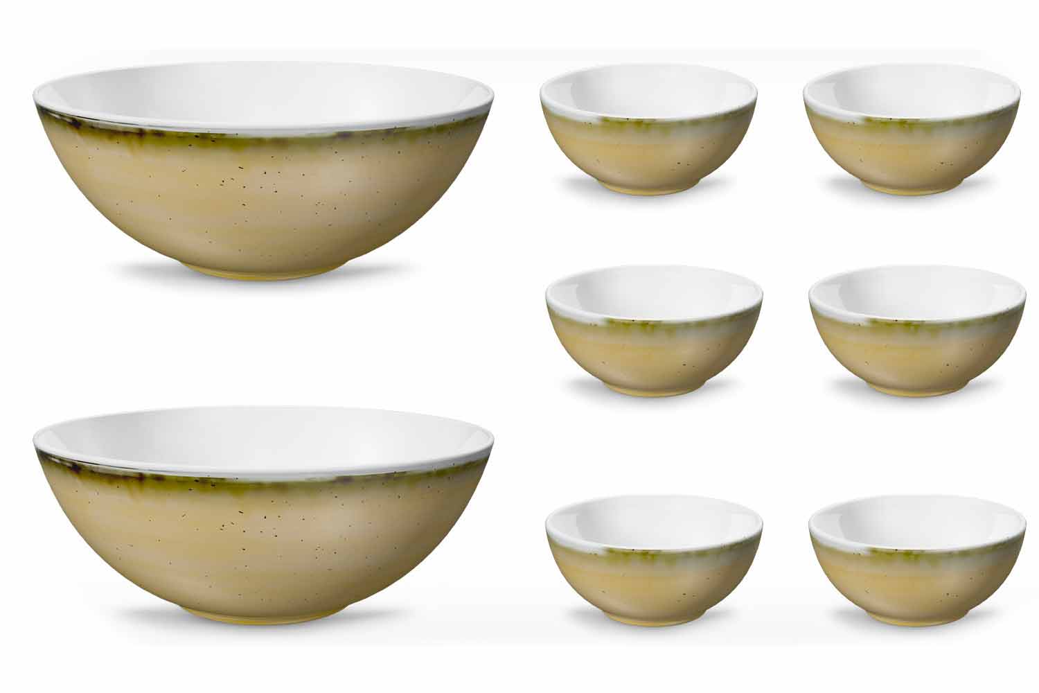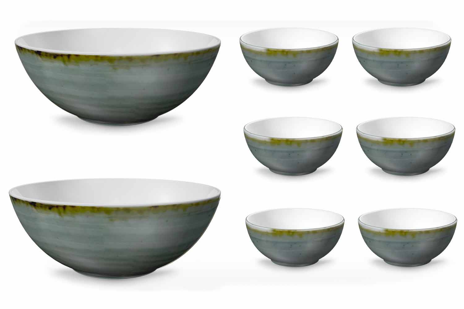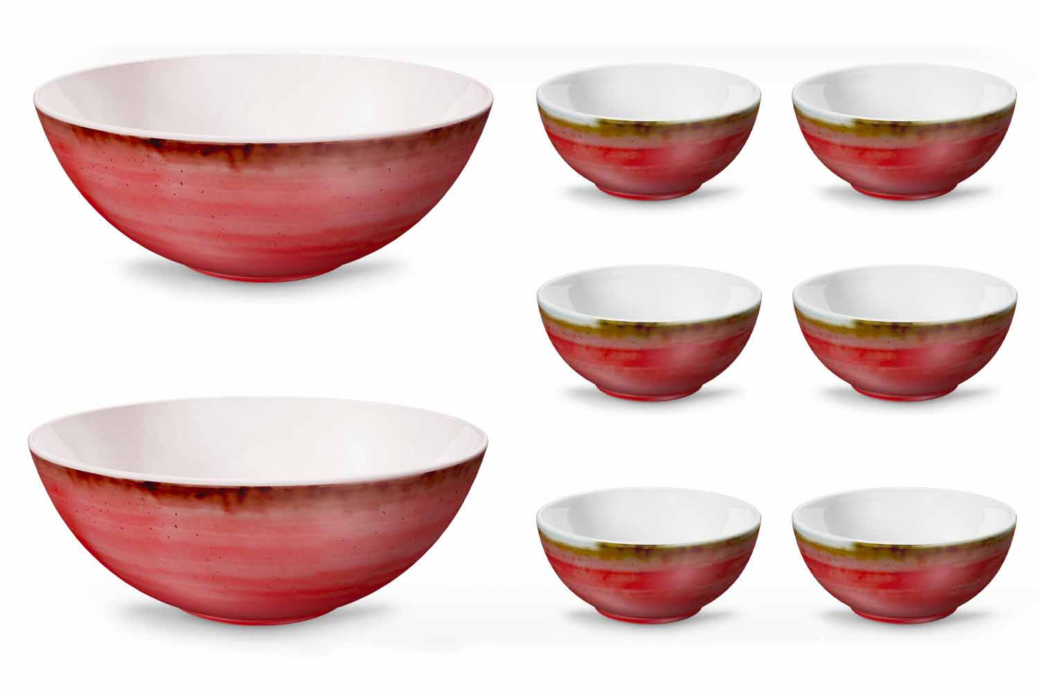 Rustiek modern design ijs- of fruitsalade-kom in gekleurd porselein, 8-delig.