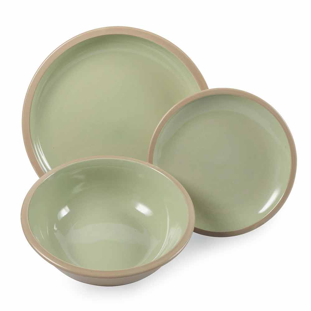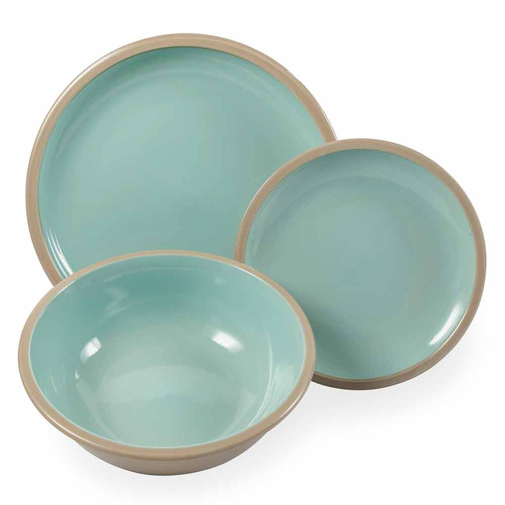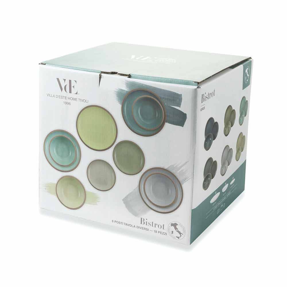 Servies gekleurde borden in steengoed compleet met 18 stuks design.