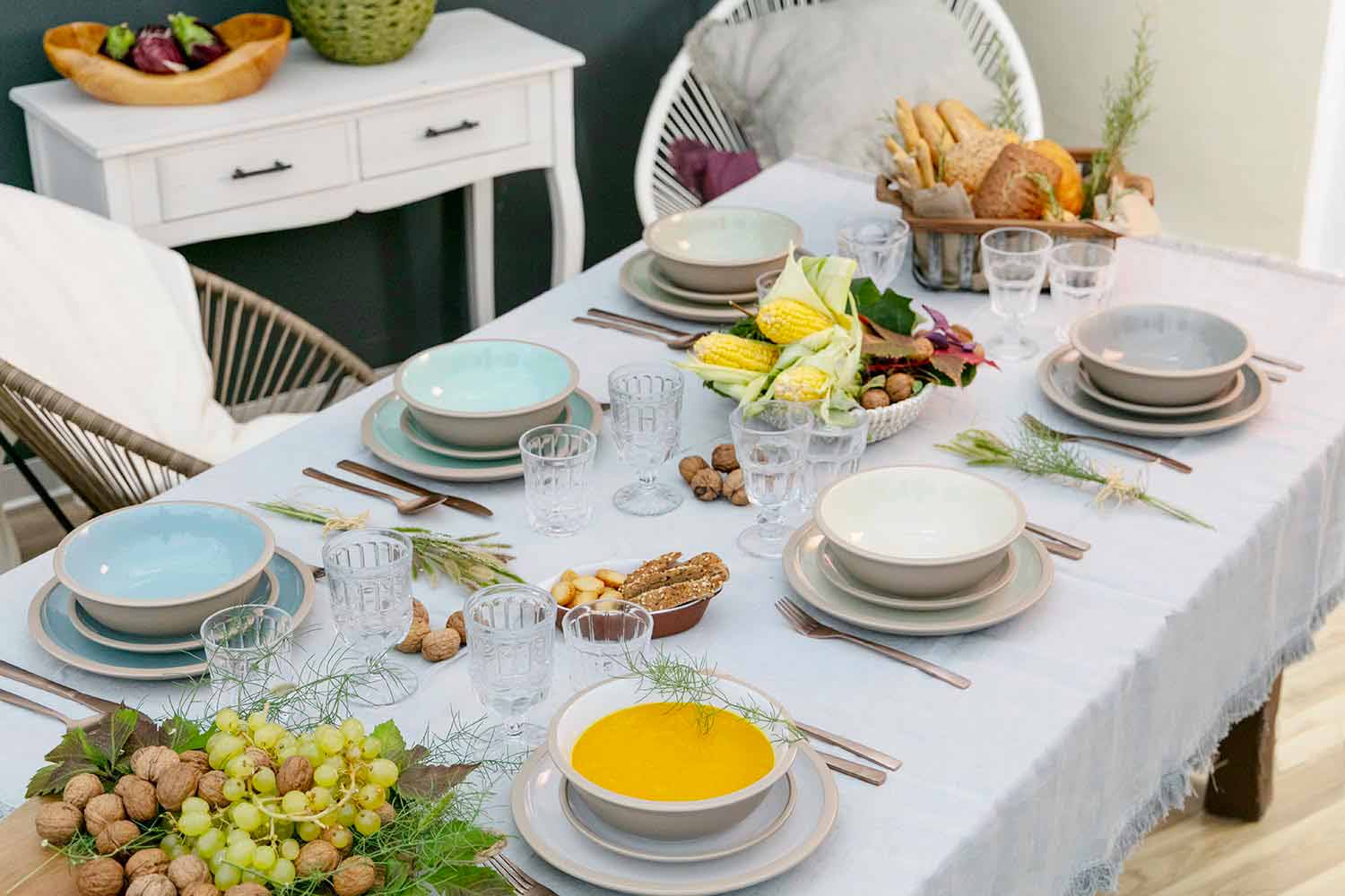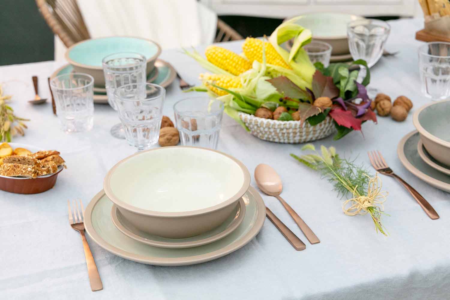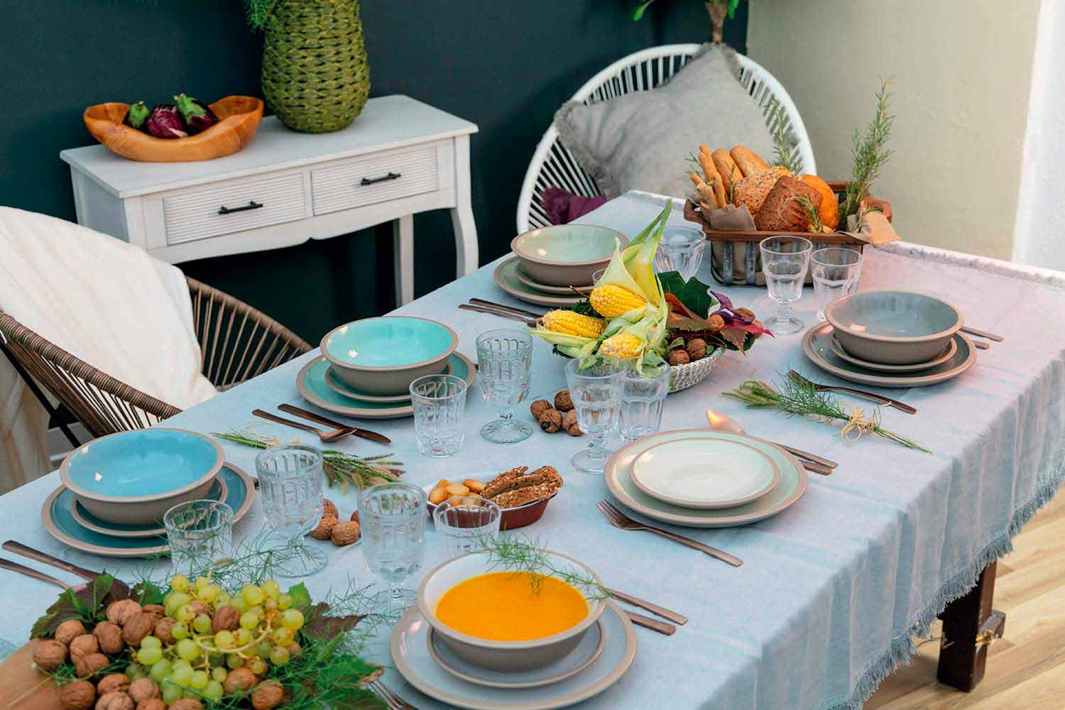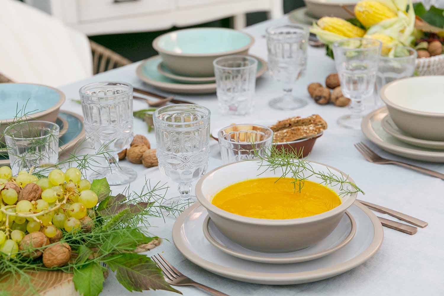 Dit servies met zachte en rustige kleuren kan een comfortabele en elegante sfeer creëren.