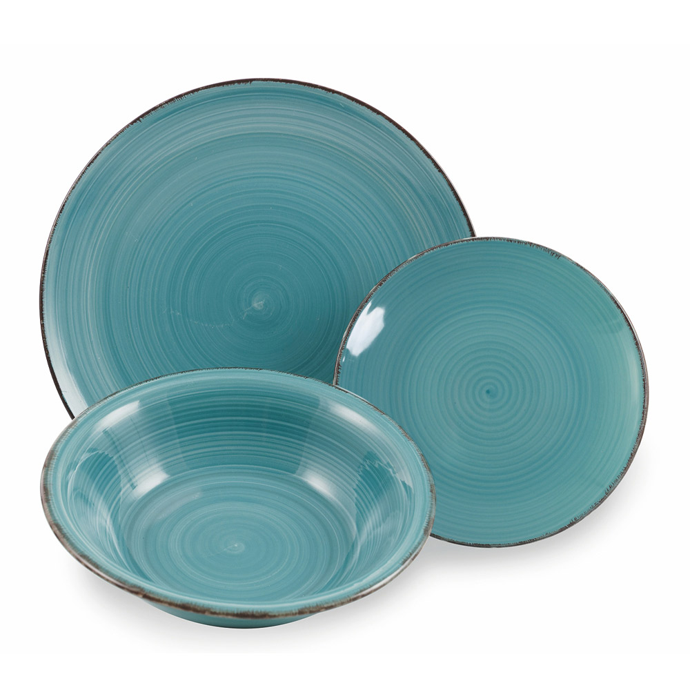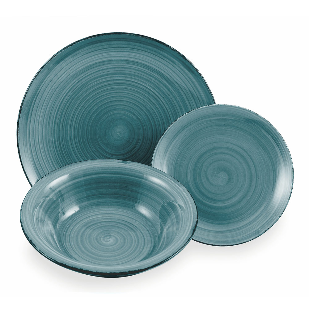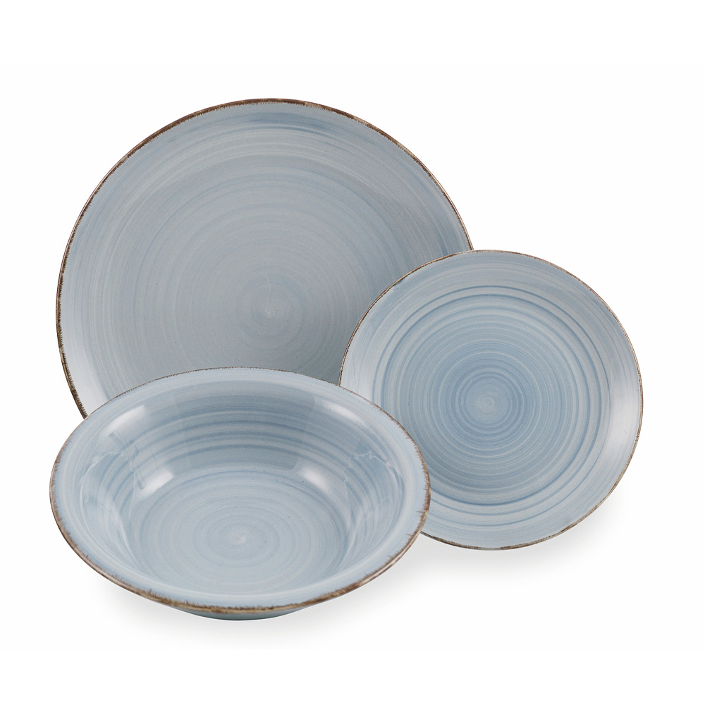 Hard dolomiet servies in 6 tinten blauw, 18 stuks.