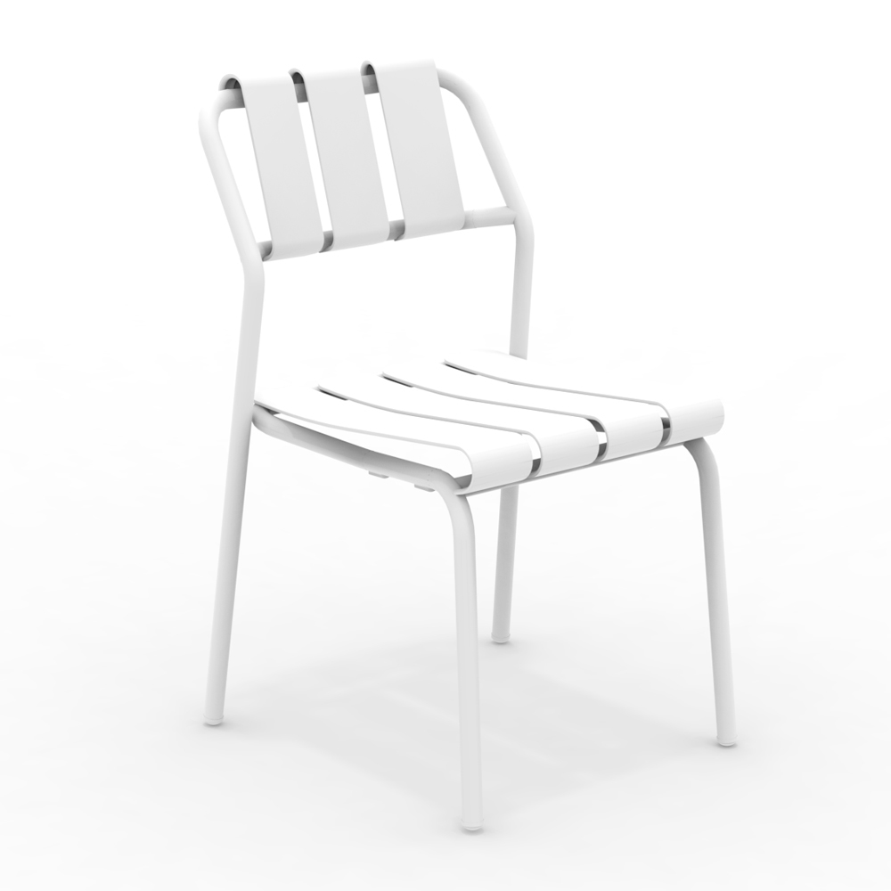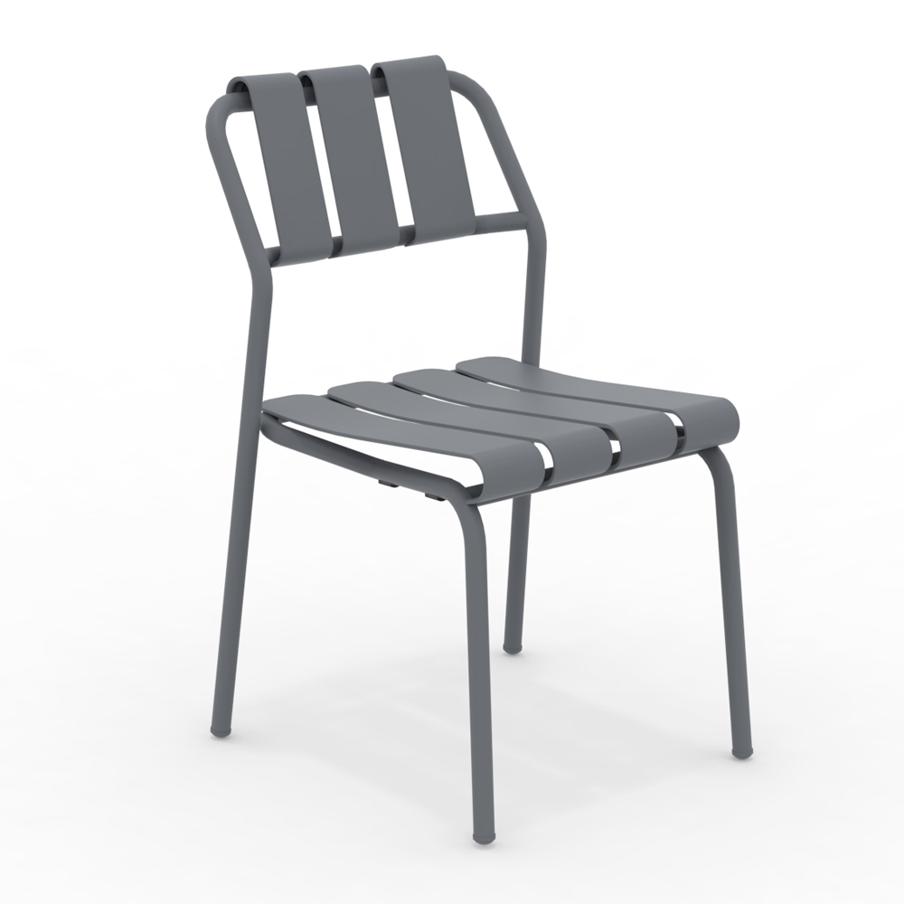 De lichte maar stevige structuur is ontworpen voor optimaal comfort, met een ergonomische zitting en een gevormde rugleuning die zorgen voor een comfortabele en ontspannende ondersteuning. De aluminium lamellen geven een dynamische en moderne uitstraling, terwijl de matte afwerking een vleugje elegantie en verfijning toevoegt.
