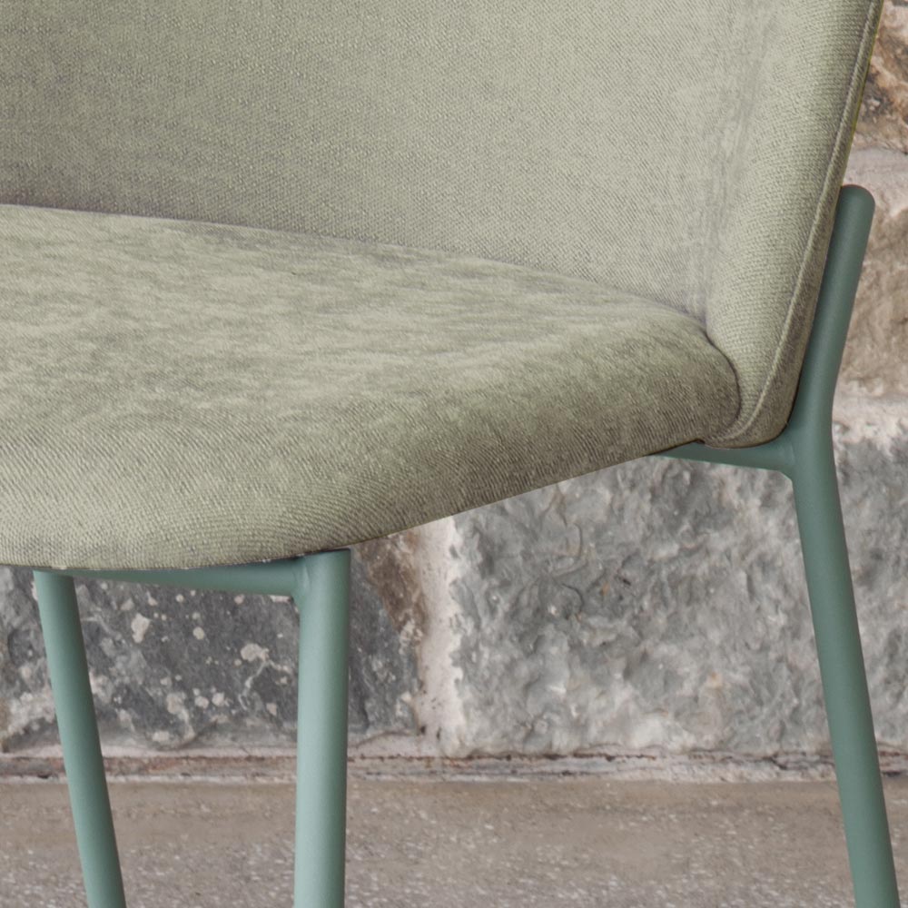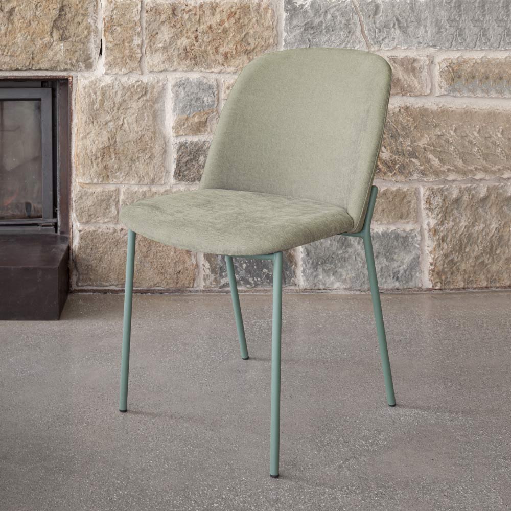 Stoelen met een modern design, gedefinieerd door zachte lijnen die comfort en veelzijdigheid garanderen. Ze worden gekenmerkt door een bekleding die verkrijgbaar is in verschillende kleuren en materialen, waardoor ze zich kunnen aanpassen aan verschillende inrichtingsstijlen. De gepoedercoate metalen poten ondersteunen een gestoffeerd lichaam, met bijpassende stiksels die bijdragen aan het strakke en elegante ontwerp van het product. Deze collectie is ideaal voor wie op zoek is naar inrichtingselementen met een eigentijds design die geen concessies doen aan het comfort.