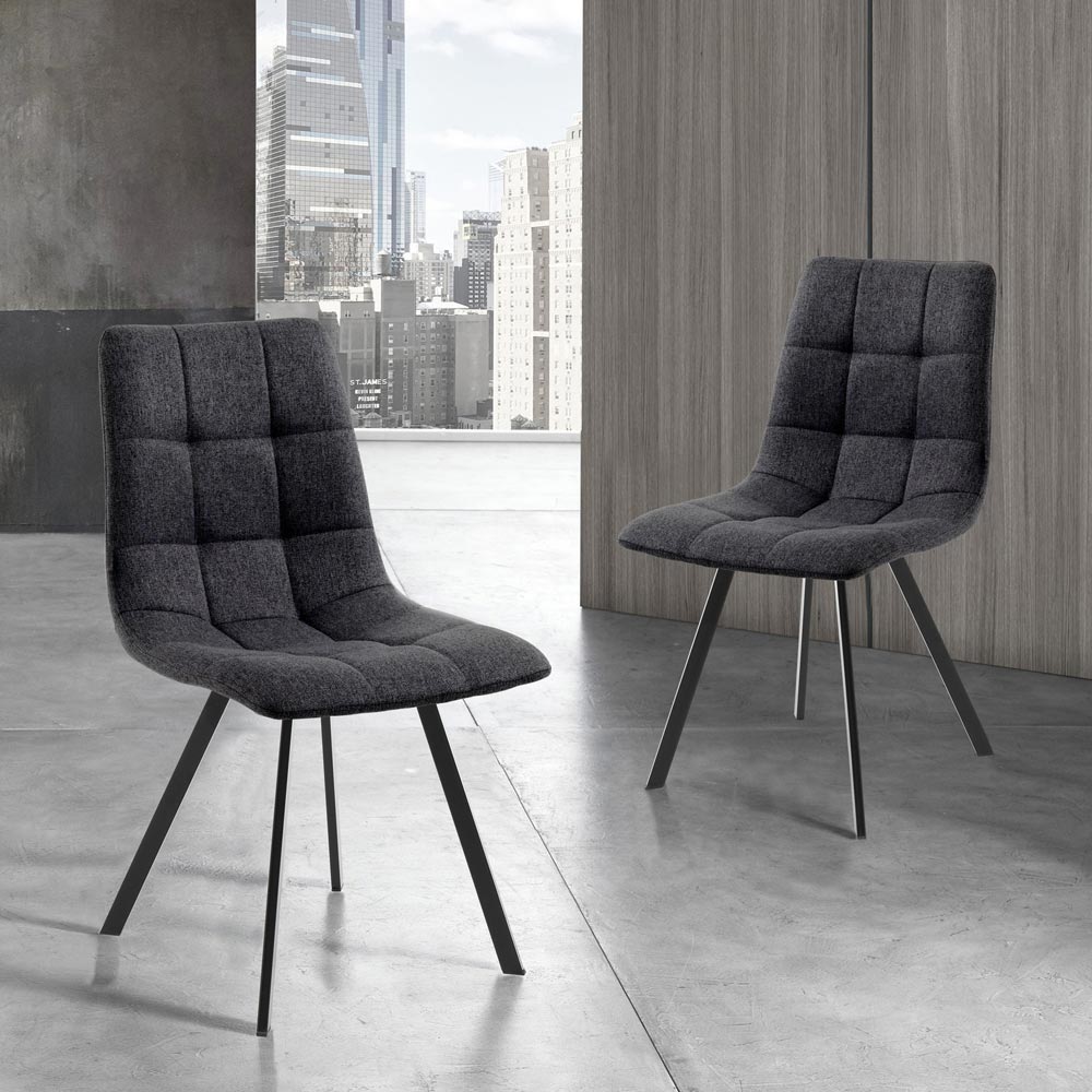 gecapitonneerde zitting bekleed met antracietkleurige stof en structuur in