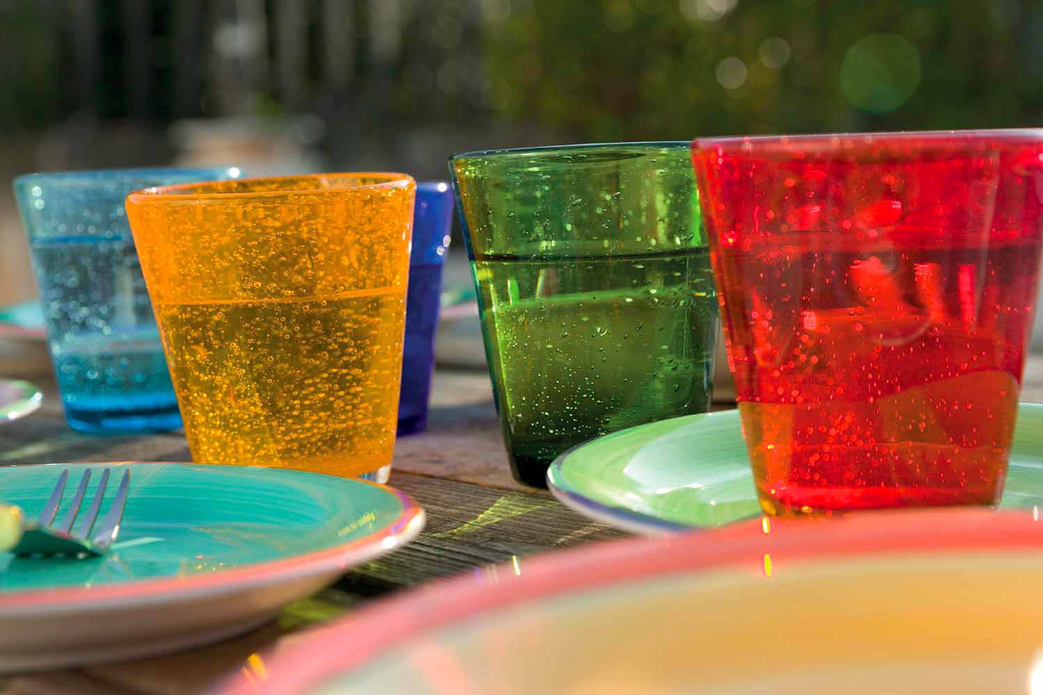 De ruime vorm verwelkomt de drankjes, onthuld door de transparantie van het geblazen glas.
