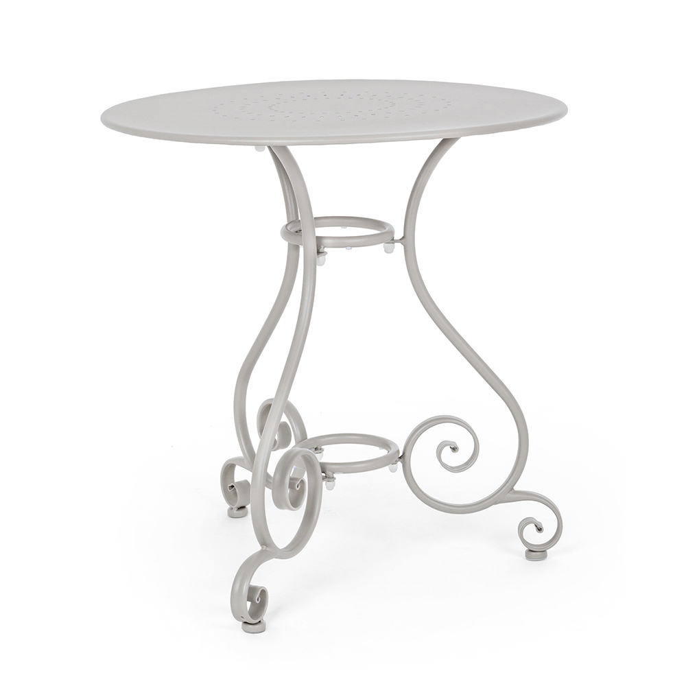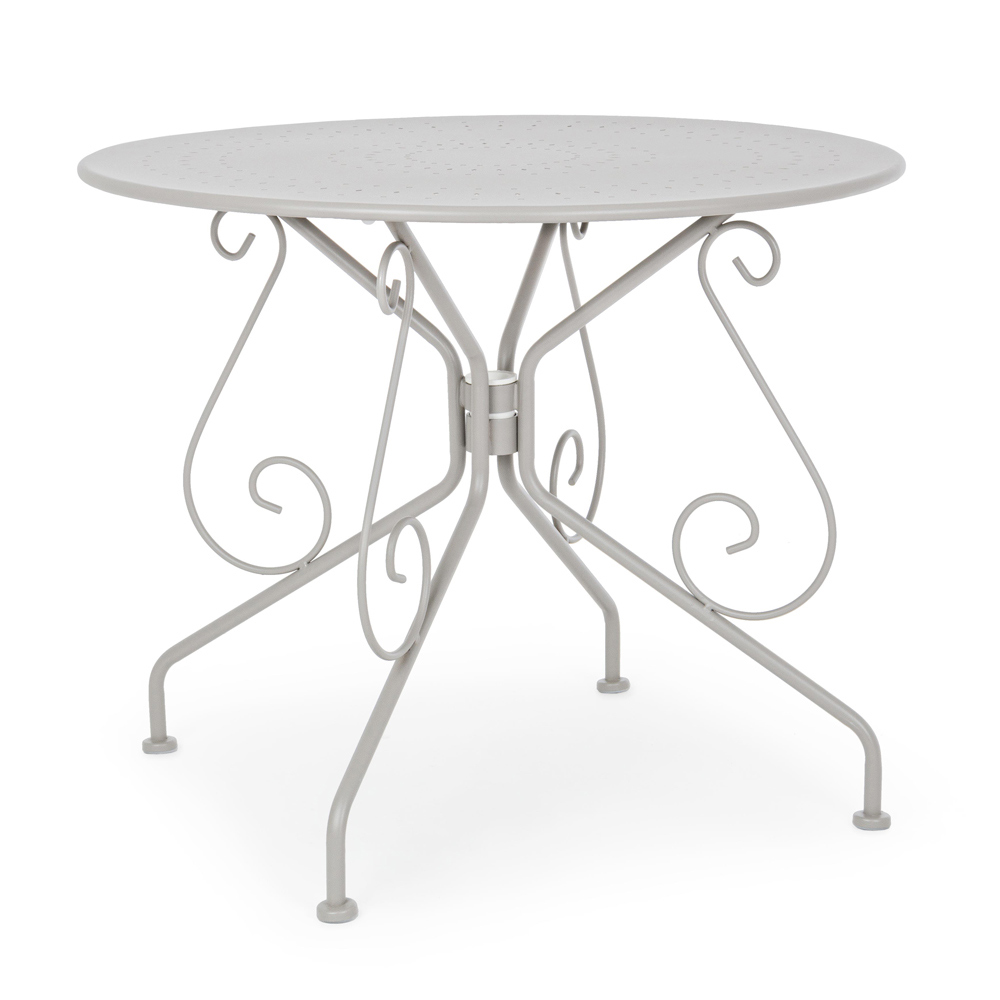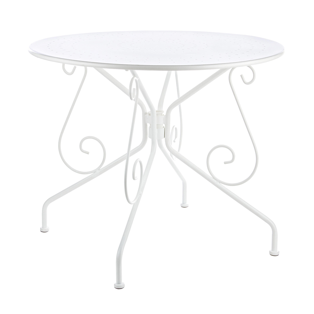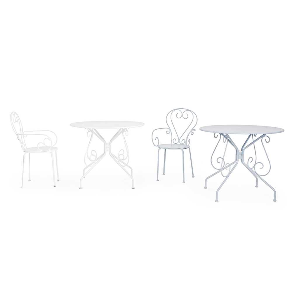 Ronde tafel voor buiten Shabby Chich stijl gemaakt van geverfd staal en verkrijgbaar in twee verschillende maten.