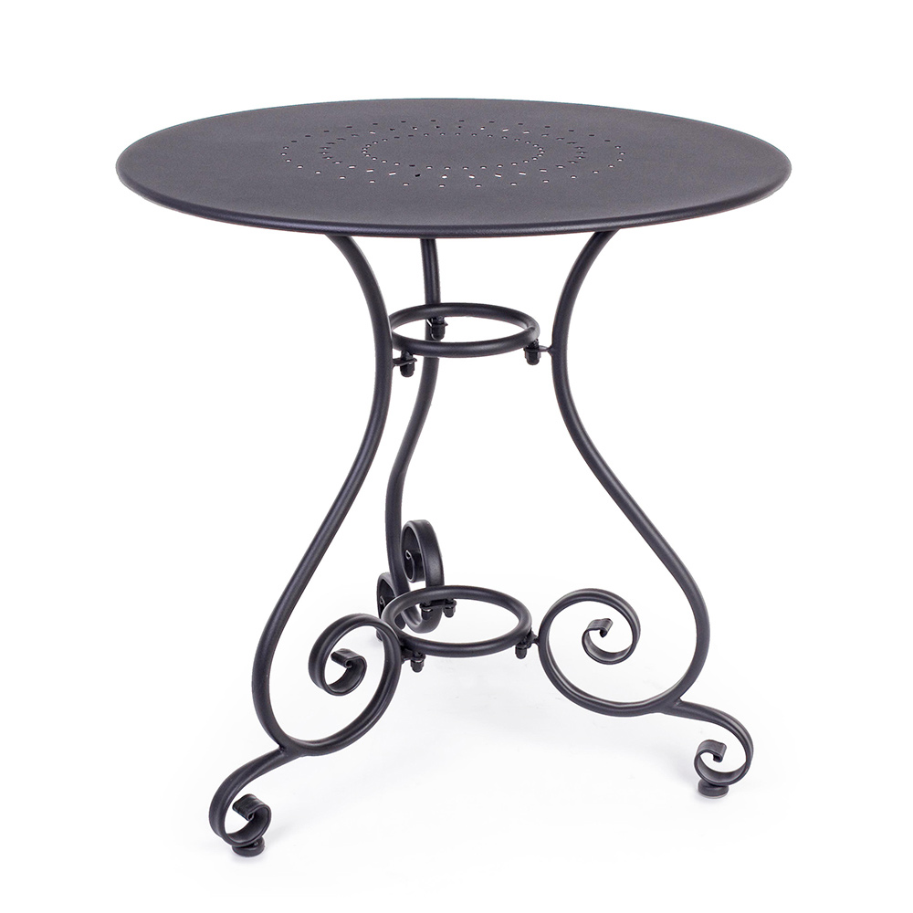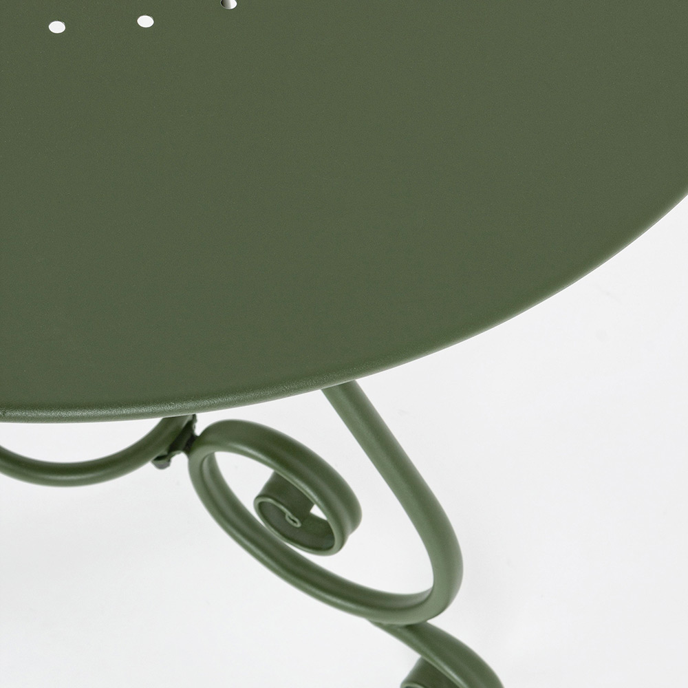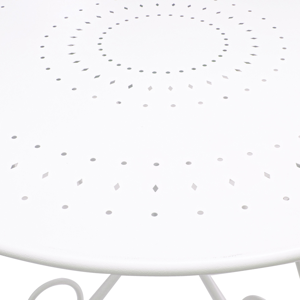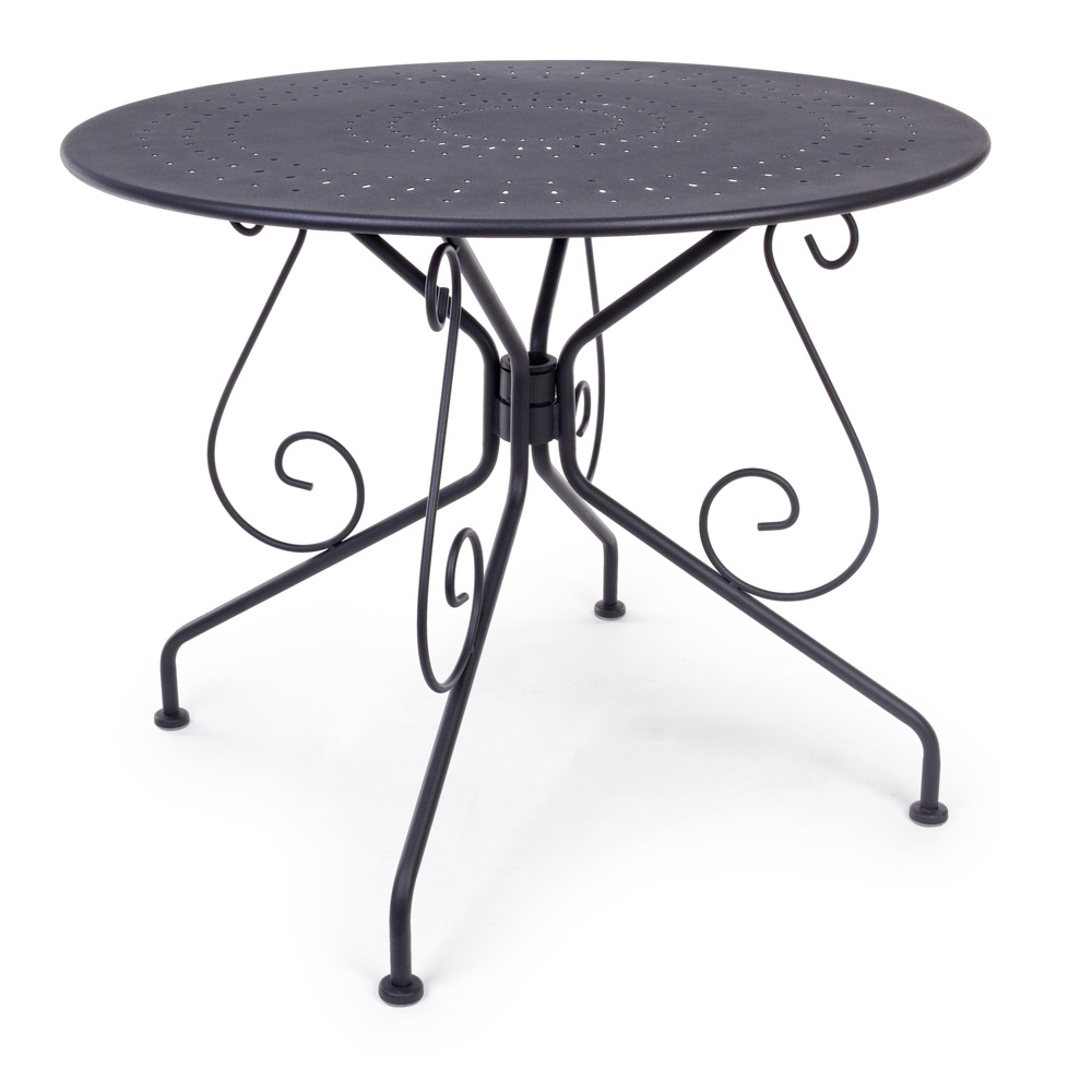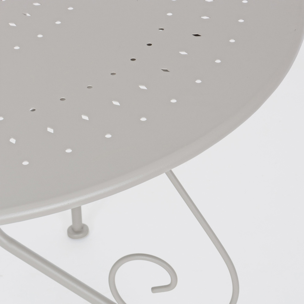 Ronde tafel voor buiten Shabby Chich stijl gemaakt van geverfd staal en verkrijgbaar in twee verschillende maten.