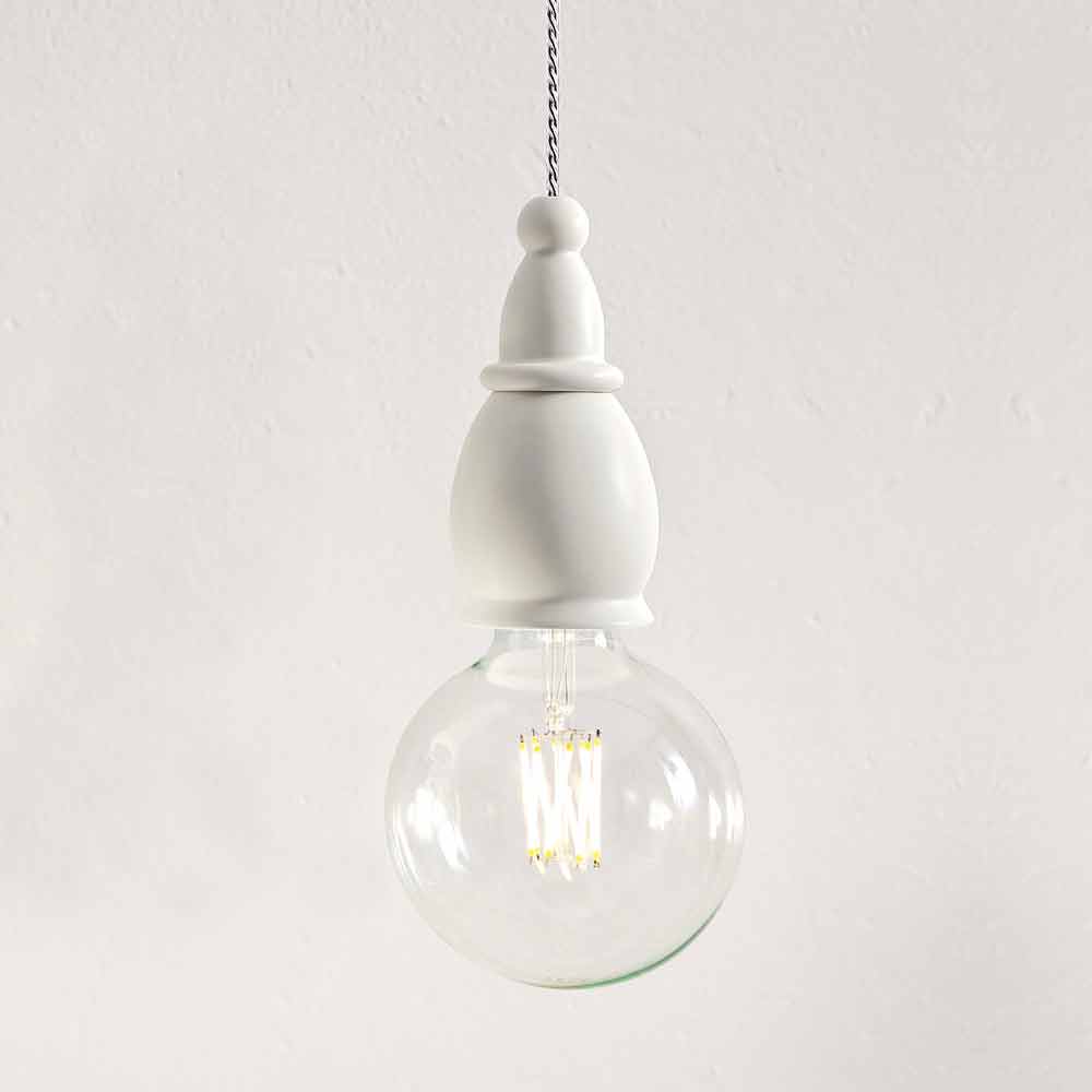 Beide afwerkingen zijn verkrijgbaar in glanzende of matte uitvoeringen. De elektrische kabel is gemaakt van staal en is omhuld met een transparante siliconen mantel. De lamp wordt geleverd zonder gloeilamp, maar is zeer geschikt voor decoratieve gloeilampen op de markt.