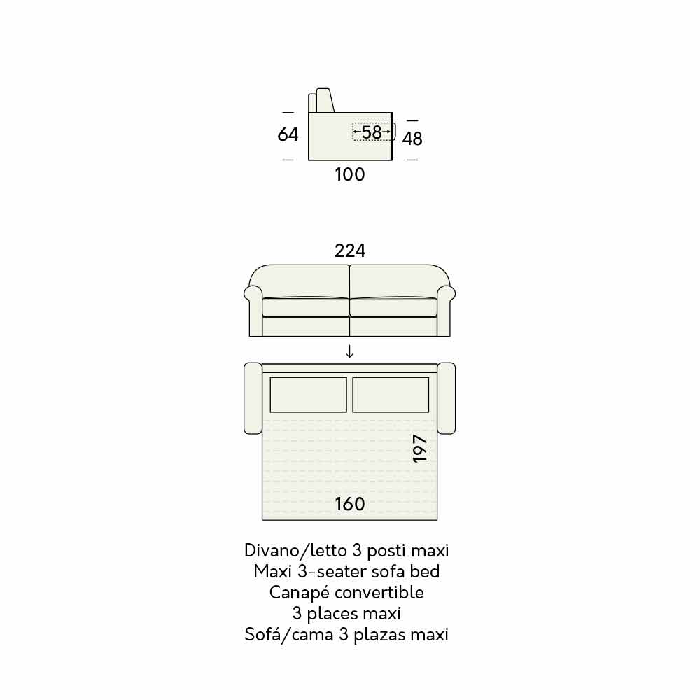 - L 224 x P 100 x H 93 cm (matras: L 160 x P 197 x H 14 cm).