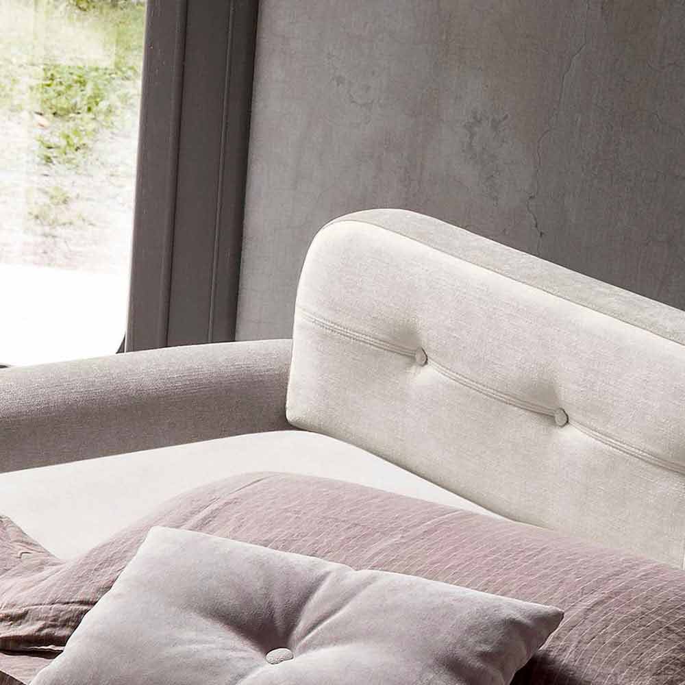 Slaapbank voor 2 personen in beige stof met contrasterende rand Made in Italy.
