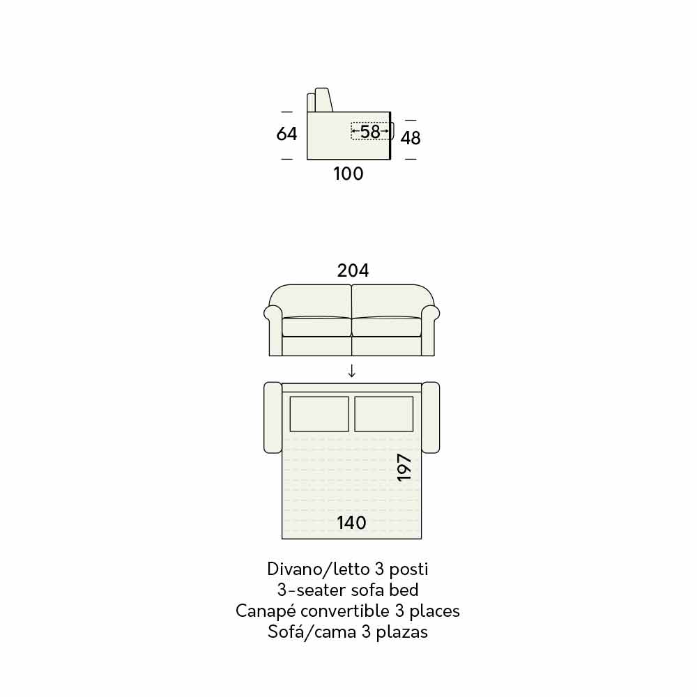 - L 204 x P 100 x H 93 cm (matras: L 140 x P 197 x H 14 cm);