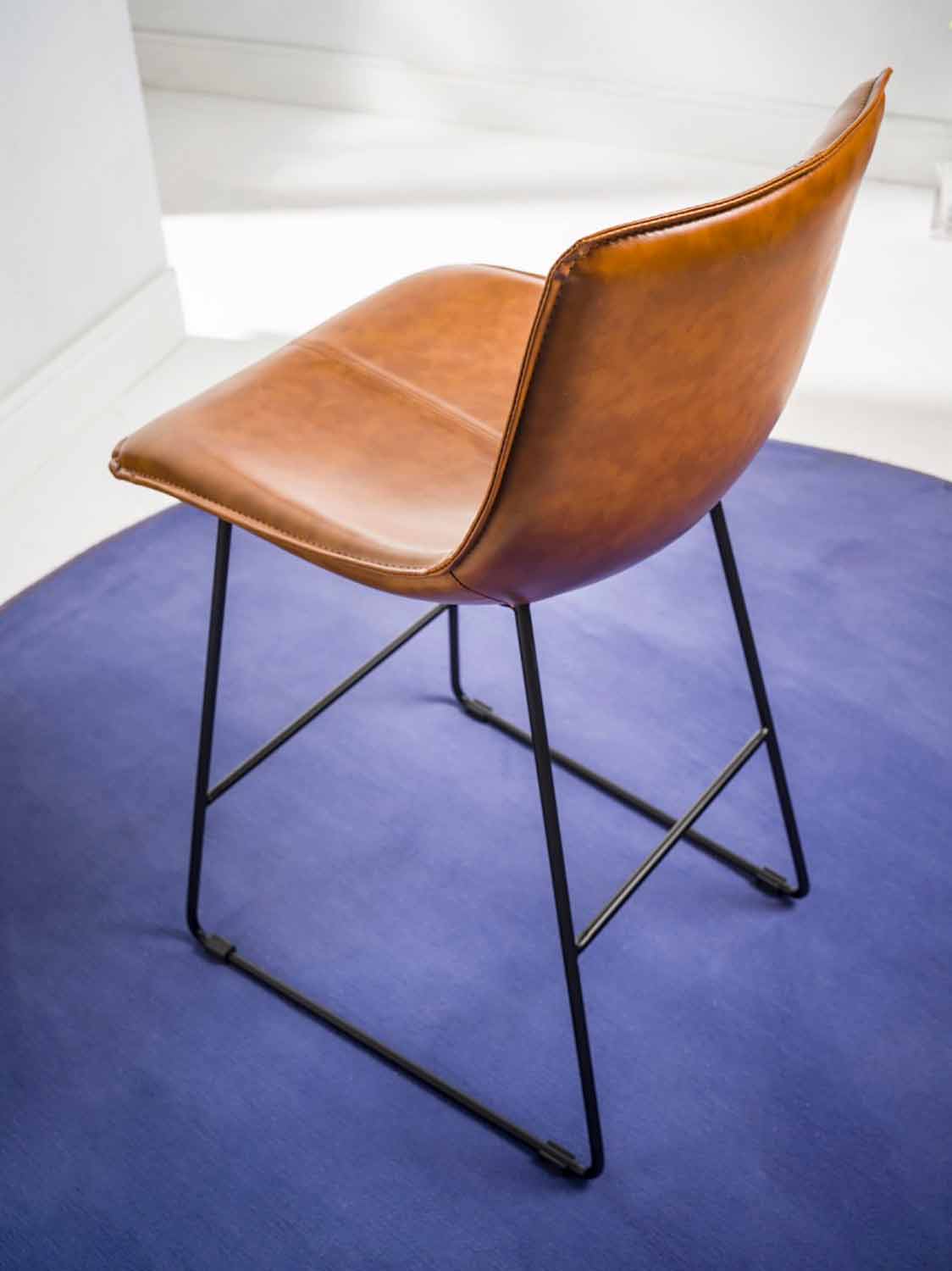 De stoel is uitgevoerd in leefbaar leereffect eco-leer.