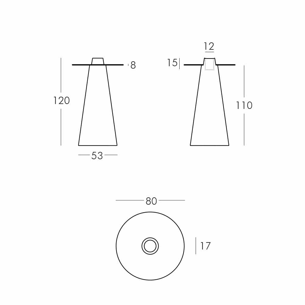 Verkrijgbaar in de lichtwitte versie H120 cm met de mogelijkheid om het glazen blad in twee verschillende maten te kiezen: