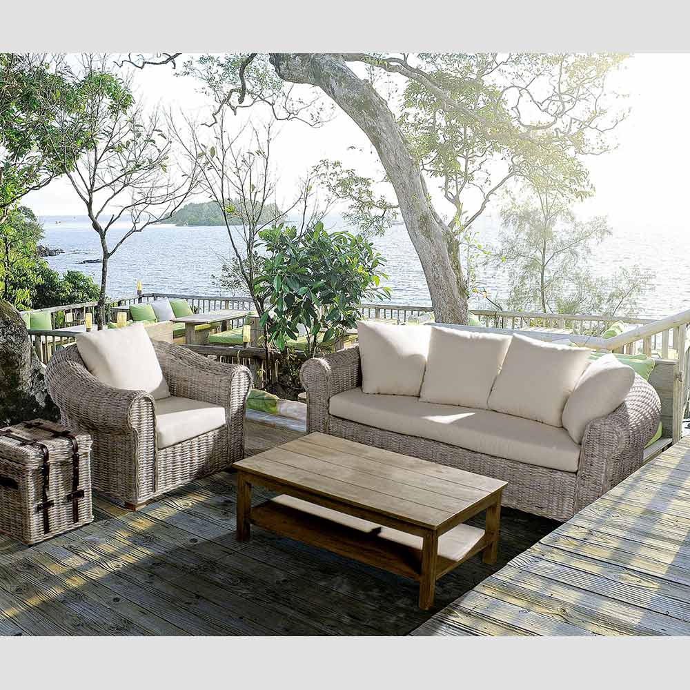 3-zits of maxi tuinbank van natuurlijk rotan met kussens - Keira