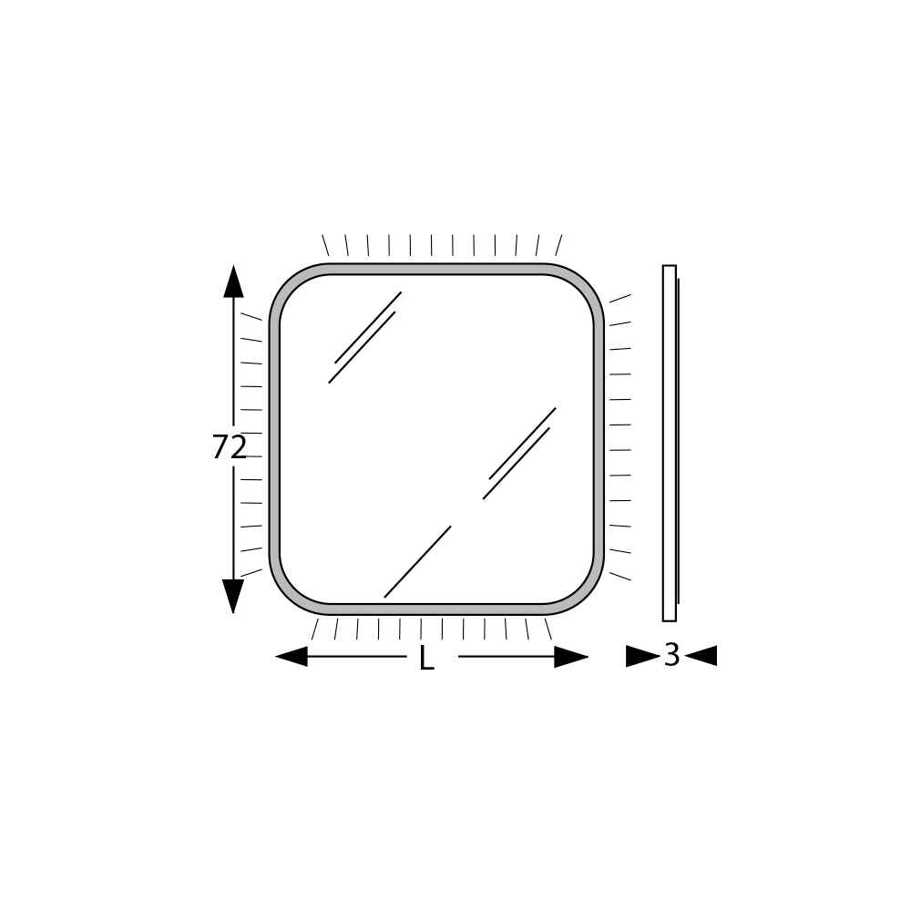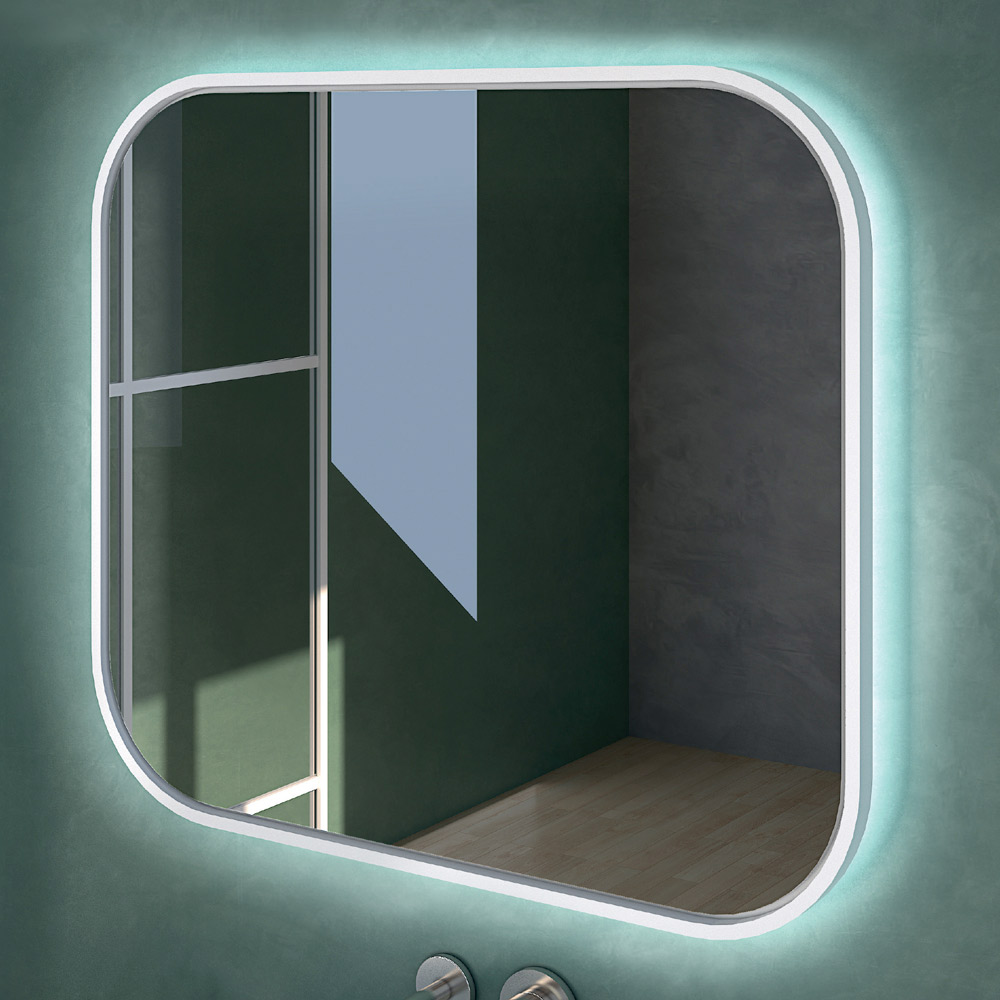 De ronde vorm met verfijnde hoeken maakt deze spiegel een veelzijdige en aantrekkelijke toevoeging aan uiteenlopende ruimtes, van de badkamer tot de slaapkamer, of als onderscheidend accent in een woonruimte. LED-technologie benadrukt niet alleen het unieke ontwerp, maar is ook energiezuinig en zorgt voor langdurige verlichting.