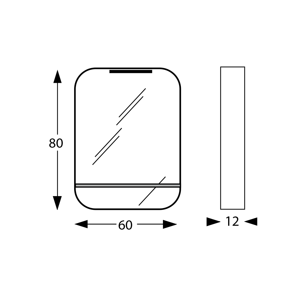Deze rechthoekige spiegel met afgeronde hoeken is een ware triomf van modern design. Het metalen frame is een gedurfd statement van elegantie en stijl , terwijl de geïntegreerde glazen plank een vleugje verfijnde functionaliteit toevoegt.