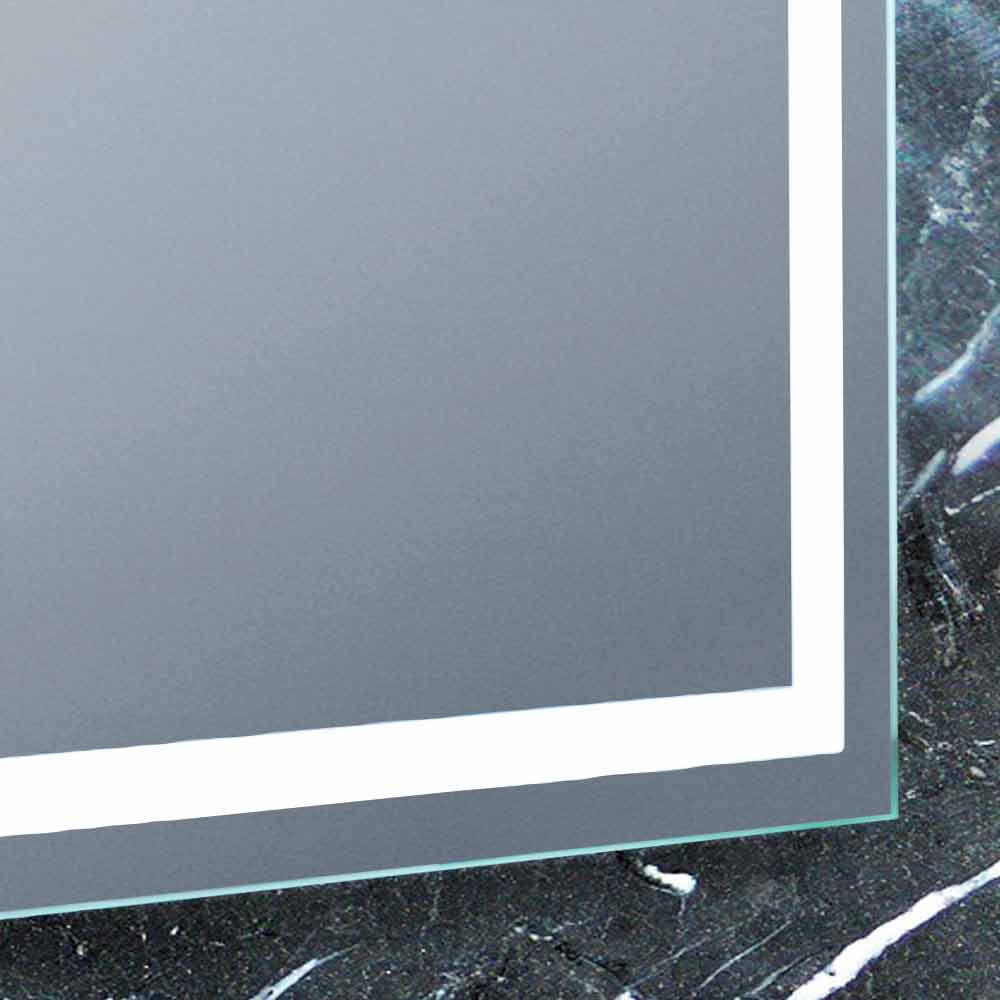 Spiegel met geïntegreerde LED-verlichting in de spiegel met roestvrij stalen randen. Paco is ook verkrijgbaar in de maat 72x96 cm.