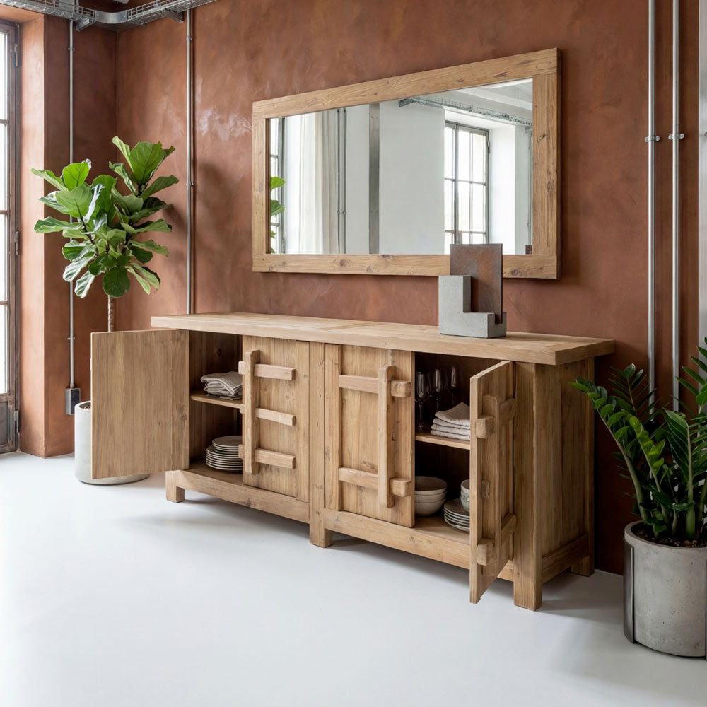 Het strakke ontwerp en de evenwichtige verhoudingen maken deze spiegel perfect als zowel functioneel als decoratief element, en hij past moeiteloos in rustieke, landelijke of moderne natuurlijke interieurs.