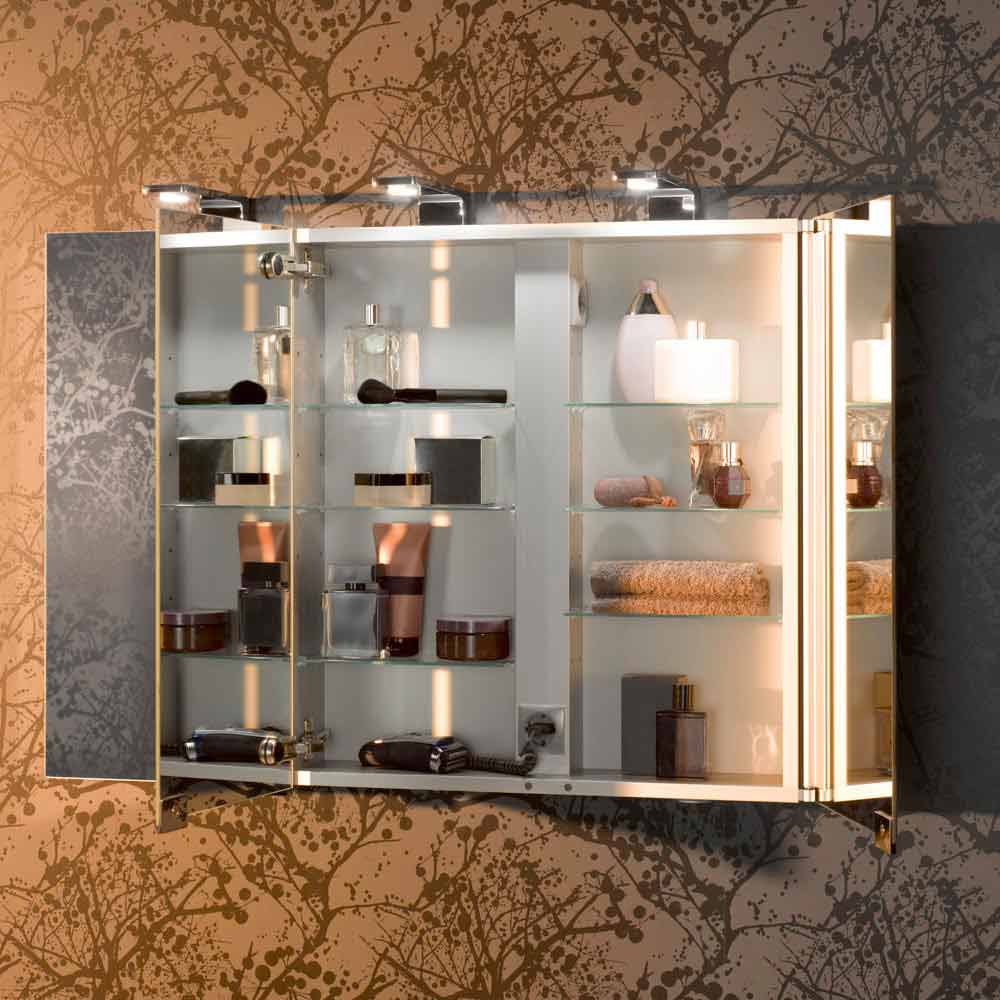 glazen planken (3 voor elke deur) in hoogte verstelbaar, ideaal om objecten en accessoires op de best mogelijke manier te rangschikken. Compleet met