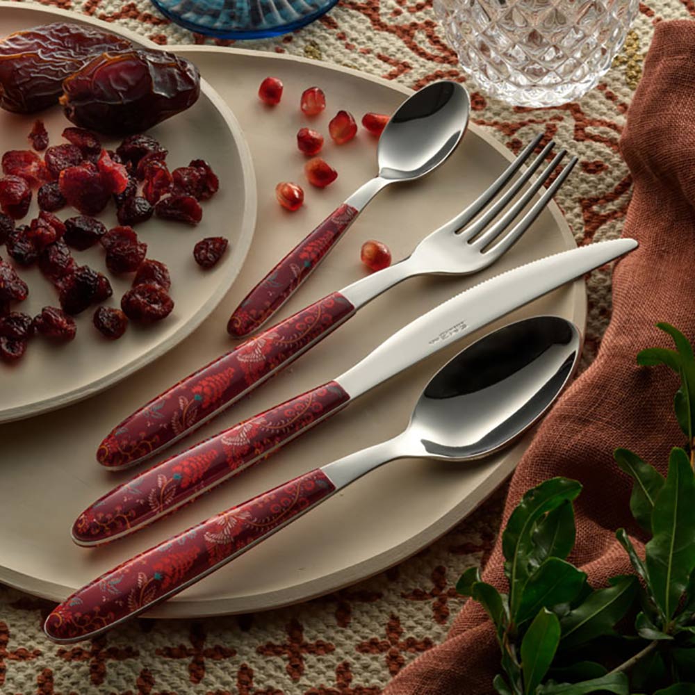 18/10 roestvrijstalen bestek, dat wil zeggen met 18% chroom en 10% nikkel, die een uitstekende weerstand tegen corrosie en gemakkelijke reiniging garanderen met een uitstekende hygiënische coëfficiënt.