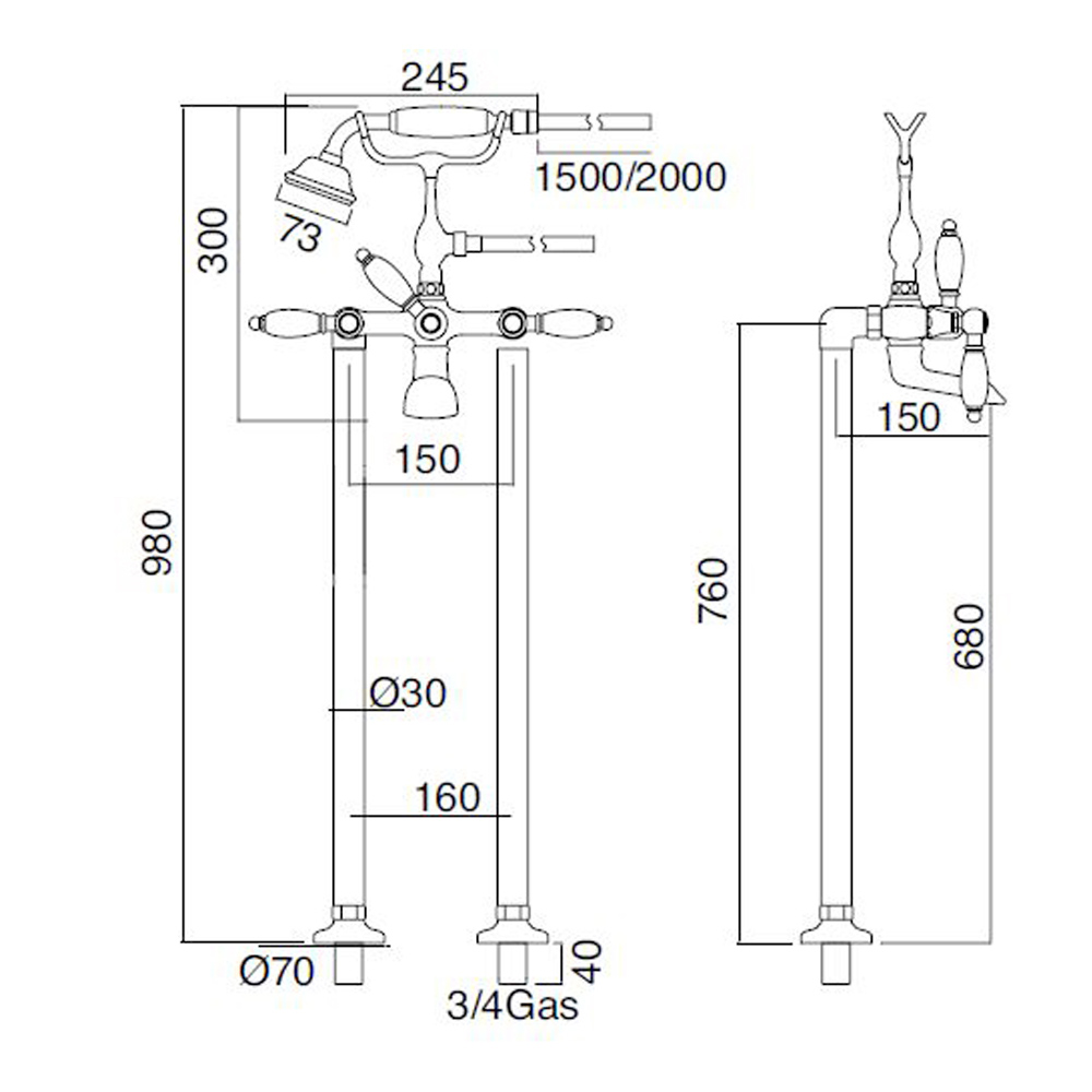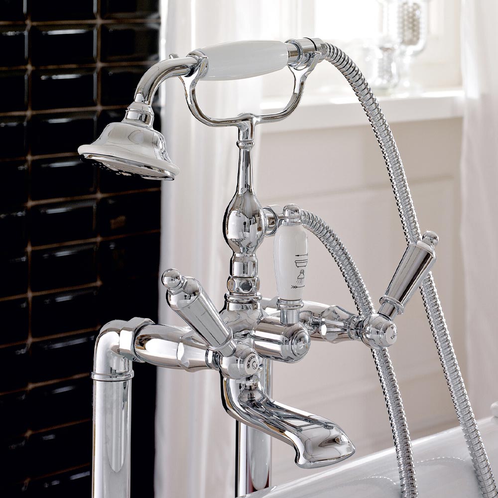 Staande badkraan met hendels in klassieke stijl, luxe item gemaakt in Italië.