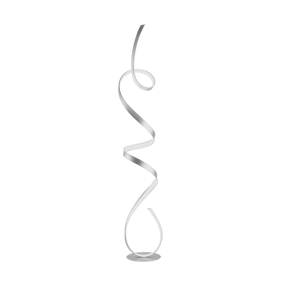 Staande lamp met zilver gelakte metalen structuur en LED-licht.