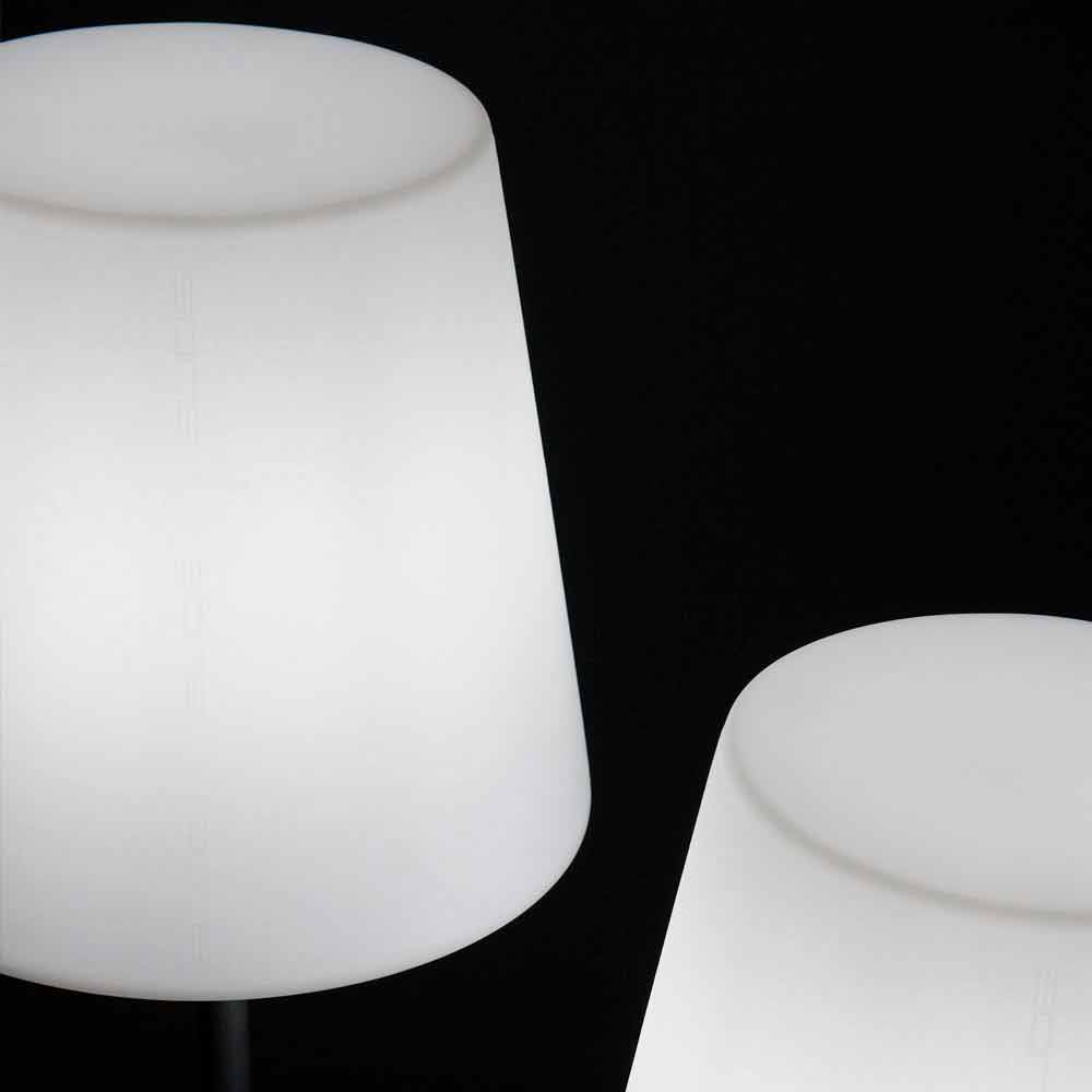 De lampenkap is gemaakt van polyethyleen in helder wit en de voet is gemaakt van gegalvaniseerd staal. Er zijn drie verschillende maten beschikbaar voor dit meubel: