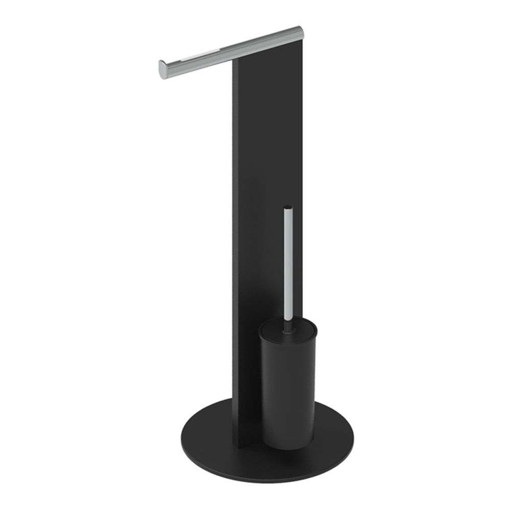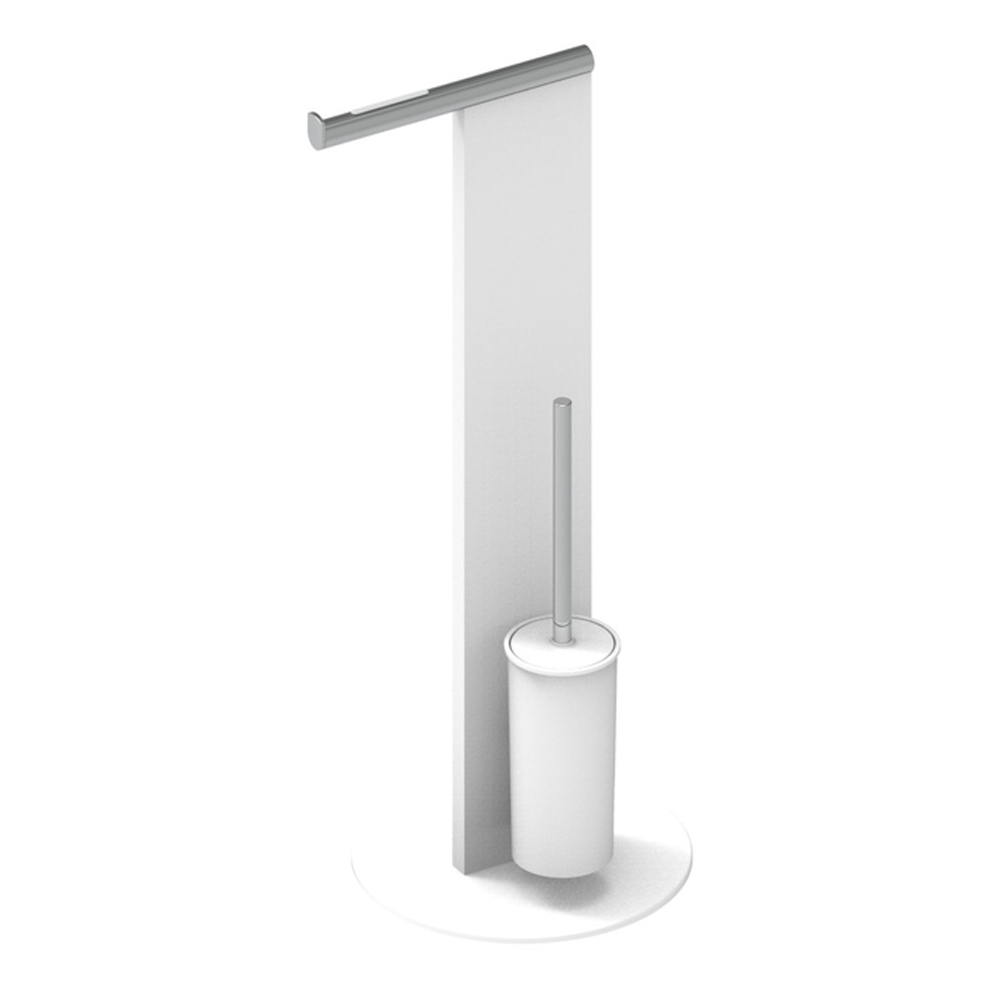 Standhouder en vloerborstel in wit of zwart aluminium.