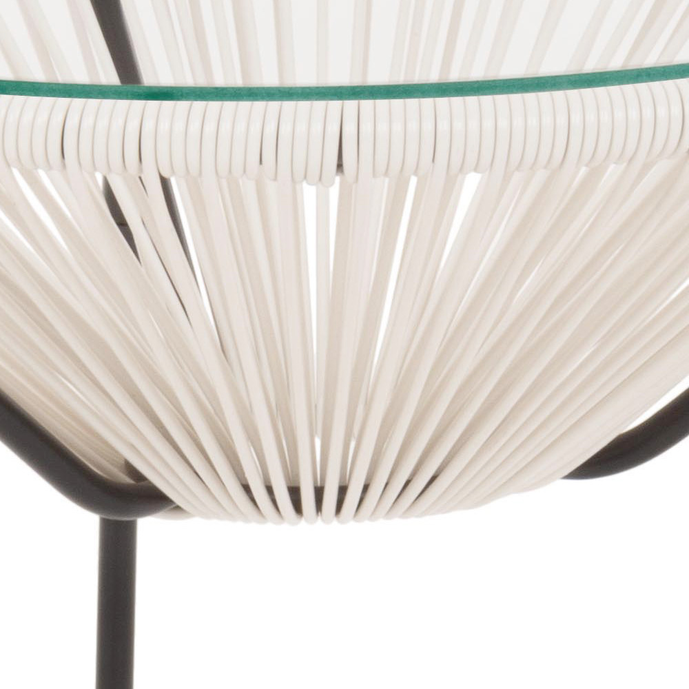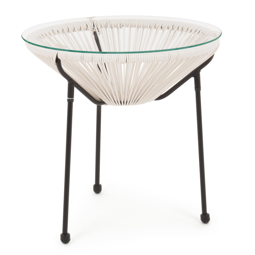Outdoor design salontafel van staal, met glazen blad, tuinartikel.