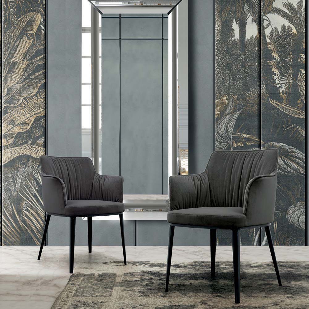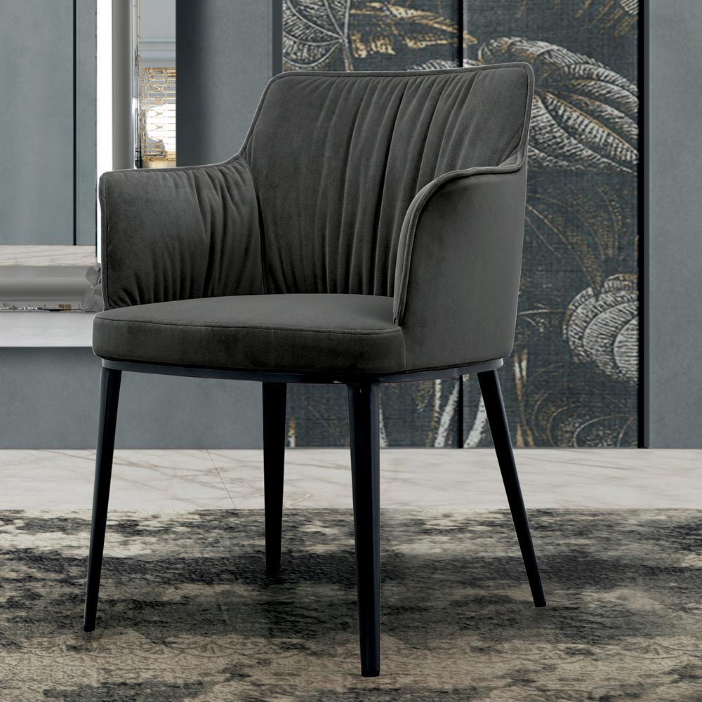 Eetkamerstoel in fluweel en zwart staal, hoge kwaliteit Made in Italy.