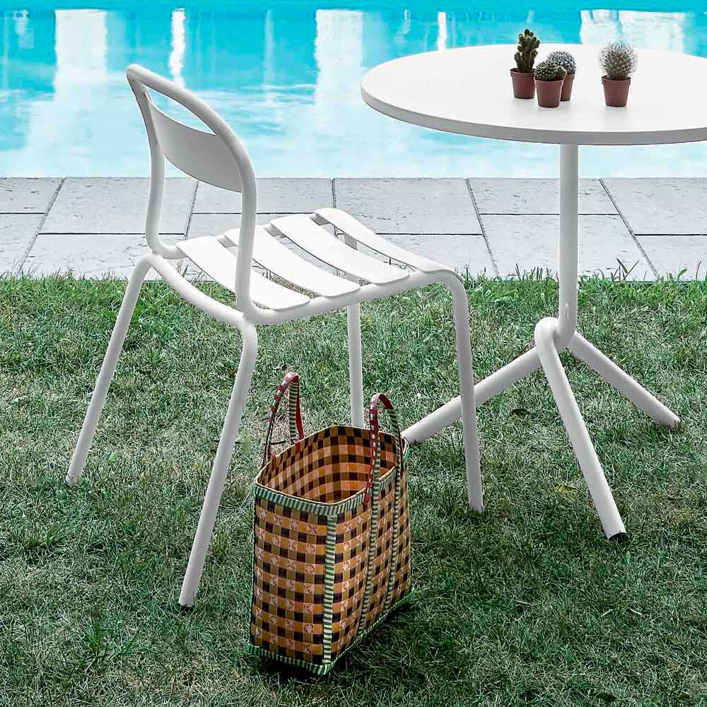 Ulyssa is een buitenstoel met een praktisch en veelzijdig ontwerp waarvan de lijnen worden gekenmerkt door hun vloeibaarheid. De stoel is volledig gemaakt van aluminium, wat perfect is voor gebruik in buitenomgevingen, maar dankzij het brede scala aan voorgestelde kleuren ook geschikt is voor binnen en niet alleen voor huiselijke omgevingen.