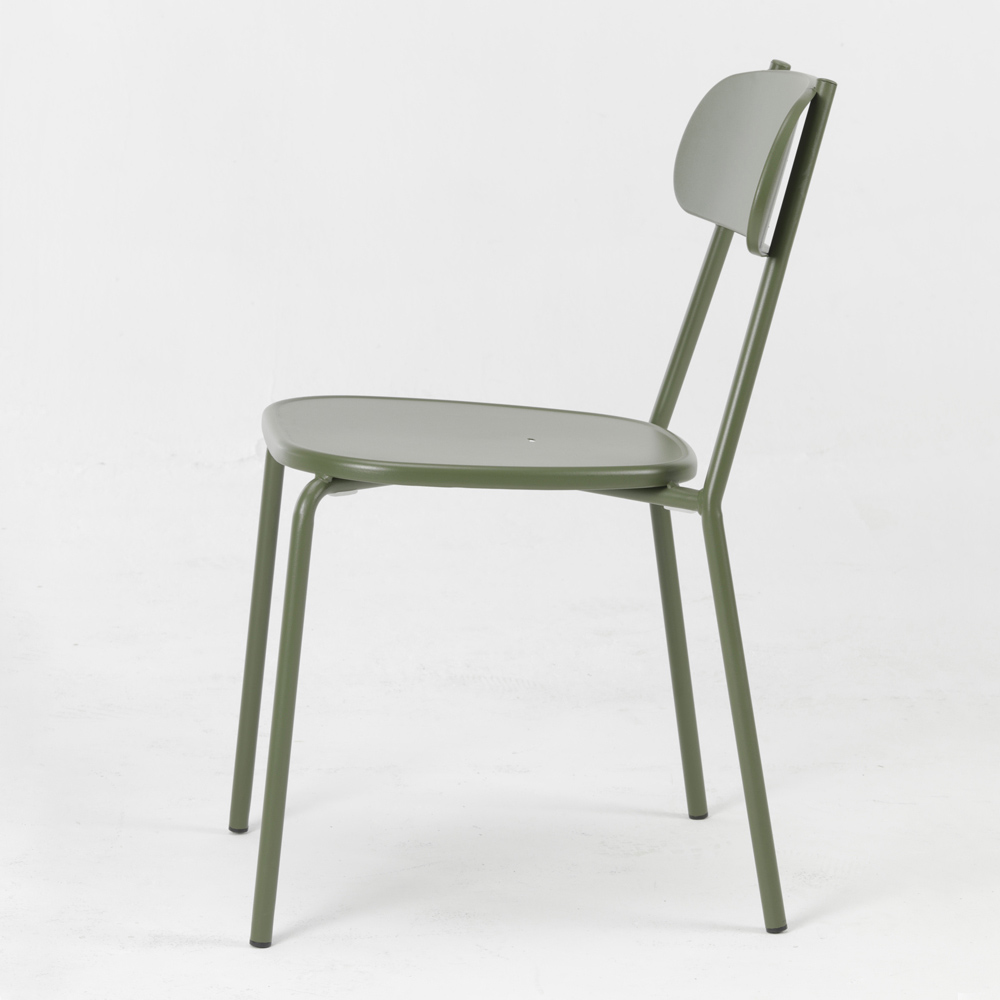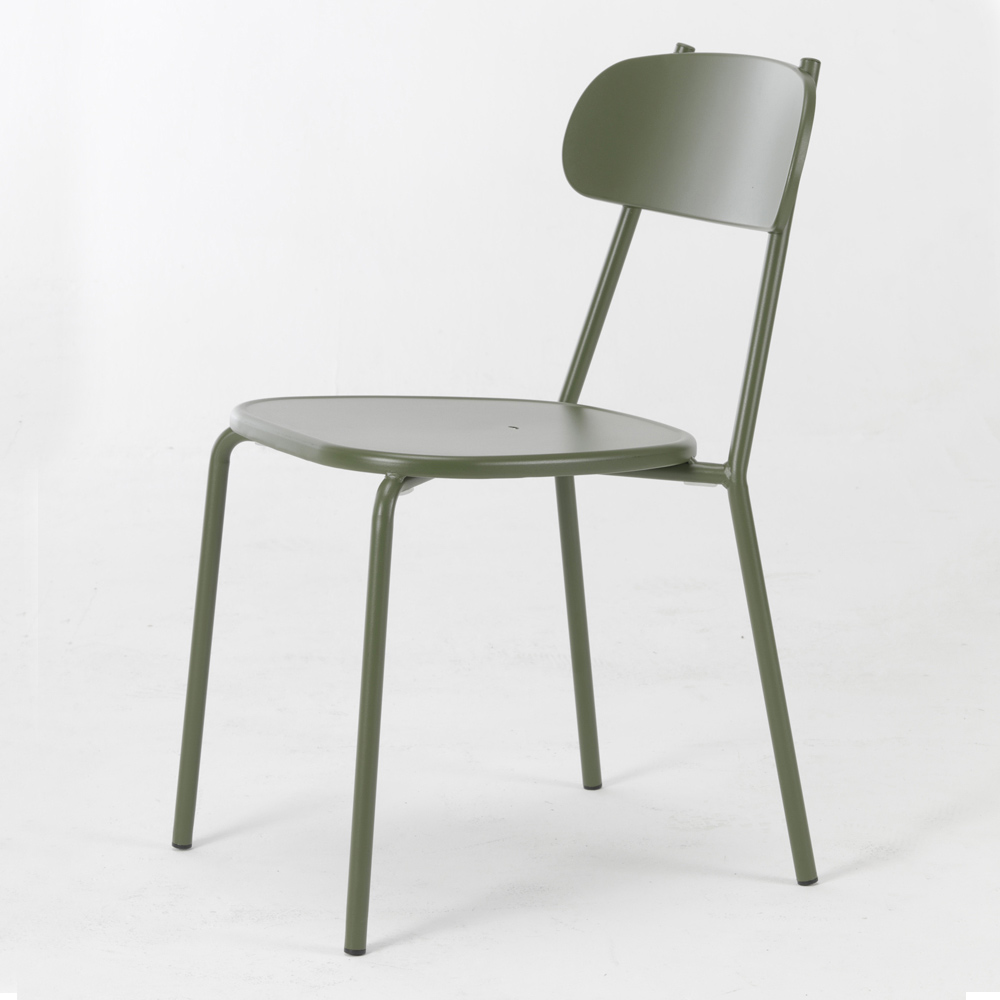 Stapelbare stoel voor buiten van gepoedercoat, gegalvaniseerd ijzer, geverfd en gegalvaniseerd. Gemaakt in Italië. 4 stuks.