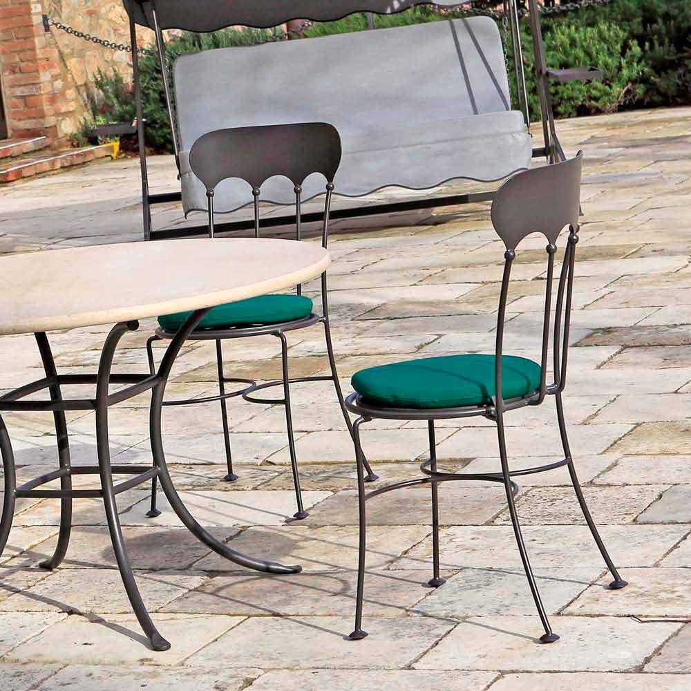 Stapelbare ijzeren buitenstoel met kussen handgemaakt in Italië, 2 stuks.