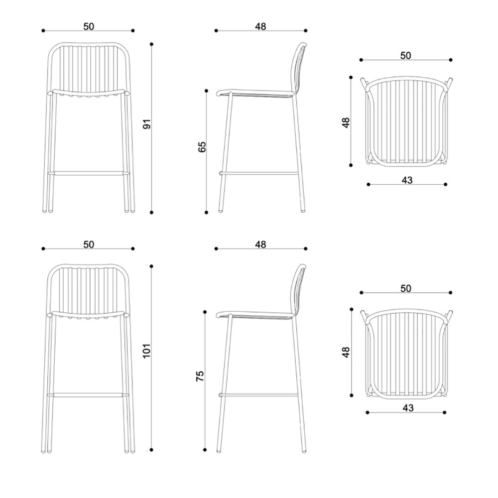- L 50 x P 48 x H 91 cm (zithoogte 65 cm);