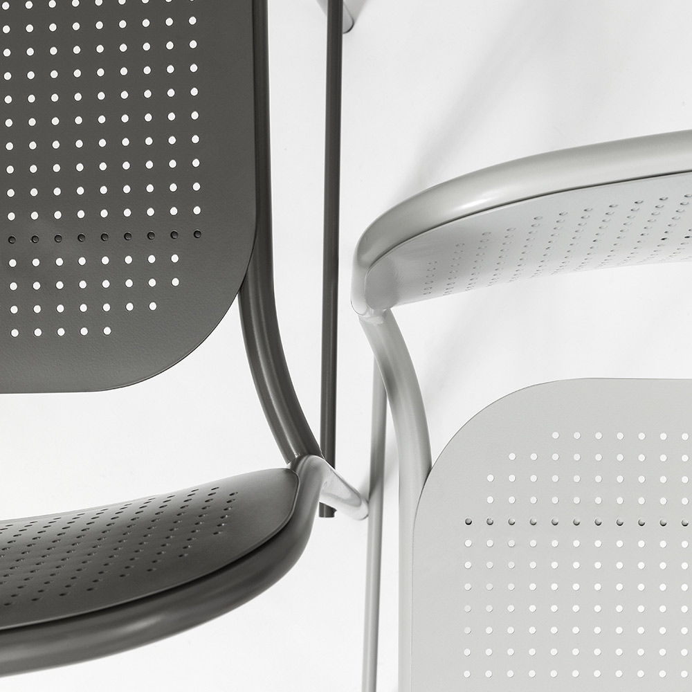 levendige en leuke esthetiek, maar ook voor wie houdt van een meer sobere en elegante stijl. De mogelijkheid om te stapelen benadrukt ook de functionele kant en maakt het ook een perfecte oplossing voor contractomgevingen zoals bars en restaurants waar het essentieel is om ruimtes te kunnen optimaliseren wanneer de fauteuils niet in gebruik zijn.