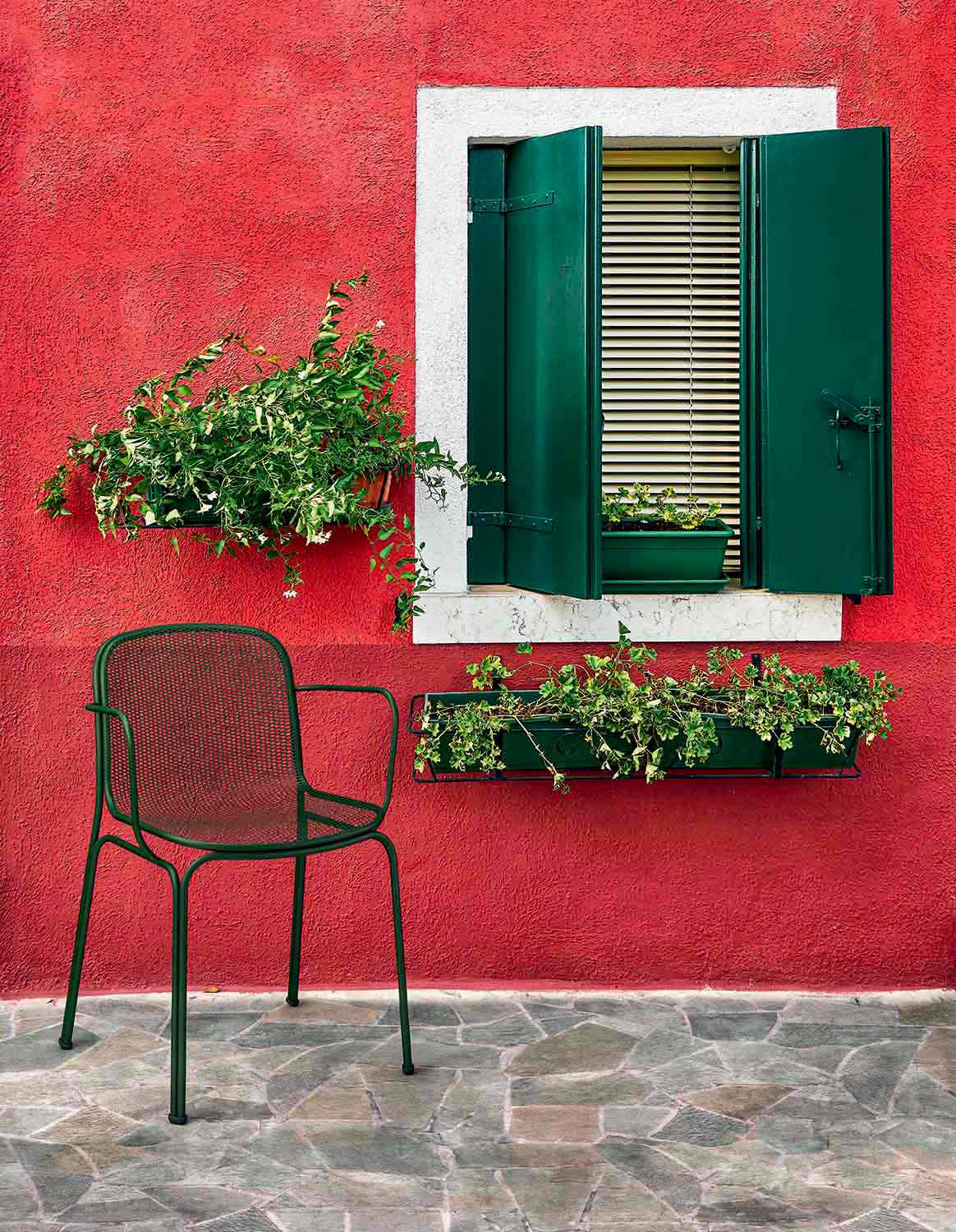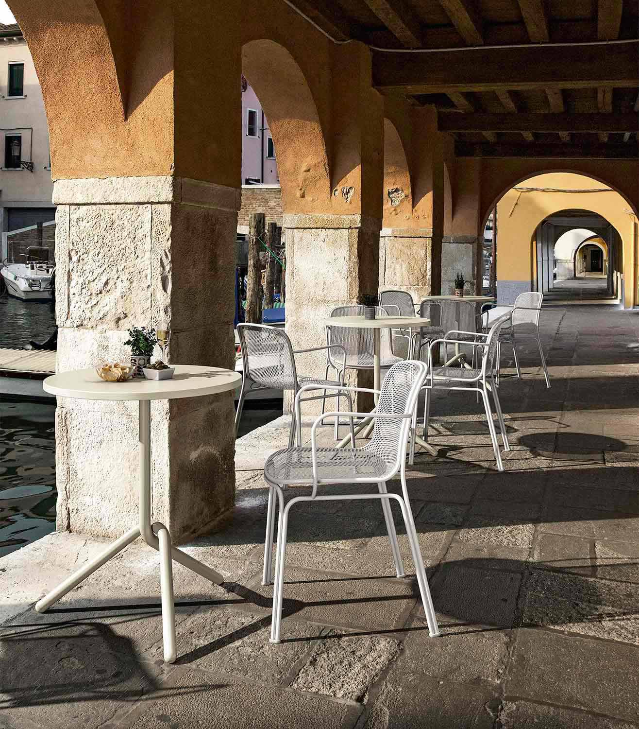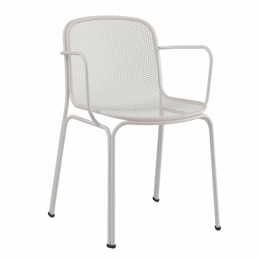Verna is een heerlijke buitenstoel volledig gemaakt van metaal en gaas die traditionele lijnen perfect combineert met een eigentijds design waardoor de stoel stevig en comfortabel is dankzij de aanwezigheid van de armleuningen. Het is ook extreem gemakkelijk te hanteren dankzij het licht verhoogde lichaam in vergelijking met de benen. Verkrijgbaar in 5 kleurvariaties waarmee het persoonlijkheid kan geven aan elke omgeving, Verna is een stapelbare stoel met een maximum van 6 eenheden, zodat u de ruimtes optimaal kunt optimaliseren.