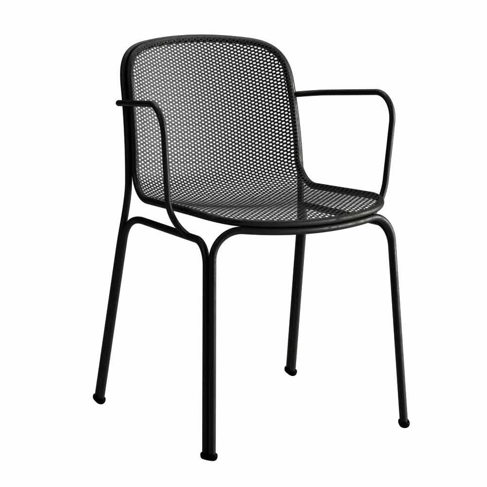 Stapelbare beschilderde metalen buitenstoel met armleuningen, made in Italy, 4 stuks.