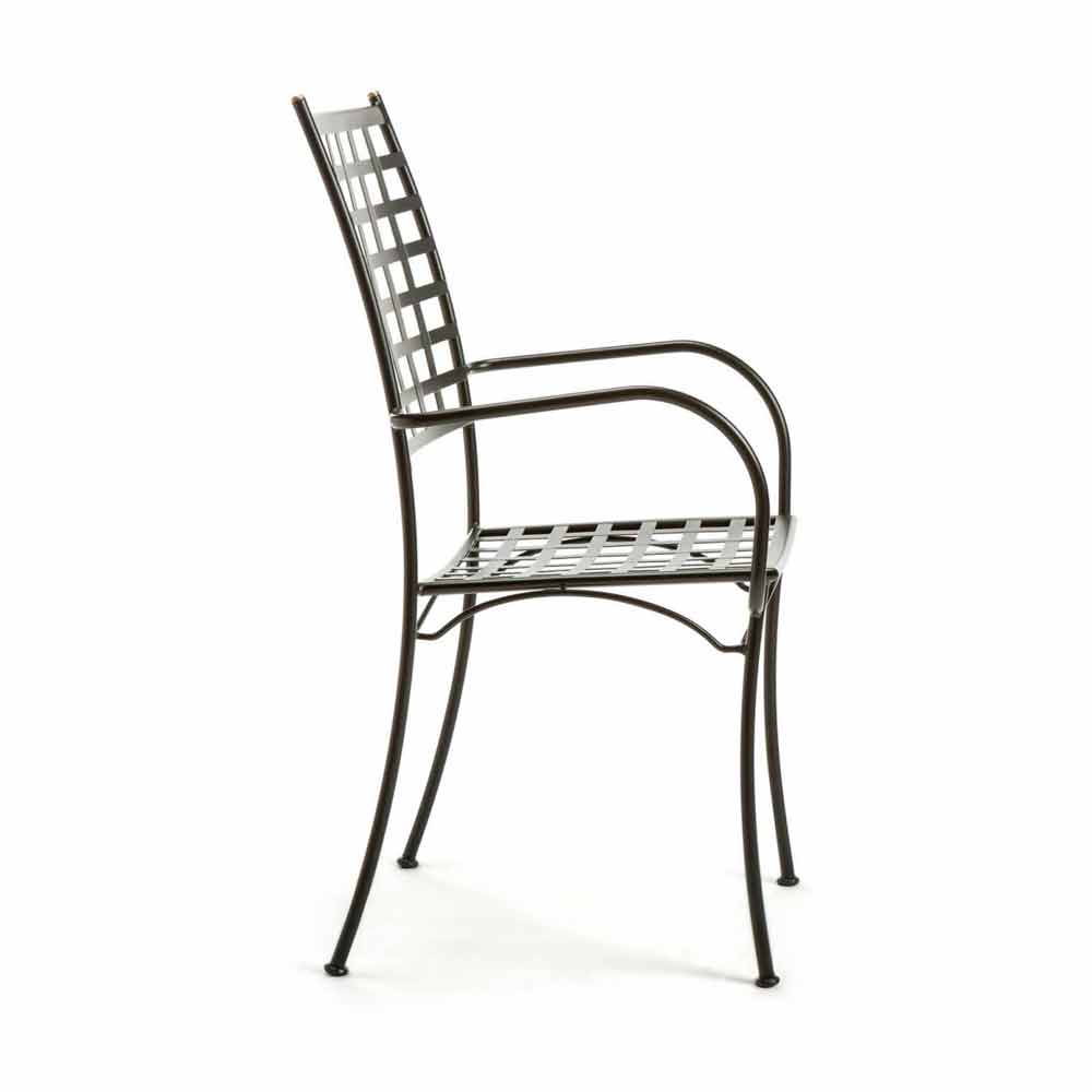 Buitenfauteuil van gepoedercoat gegalvaniseerd ijzer met armleuningen, stapelbaar. Gemaakt in Italië, 4 stuks.