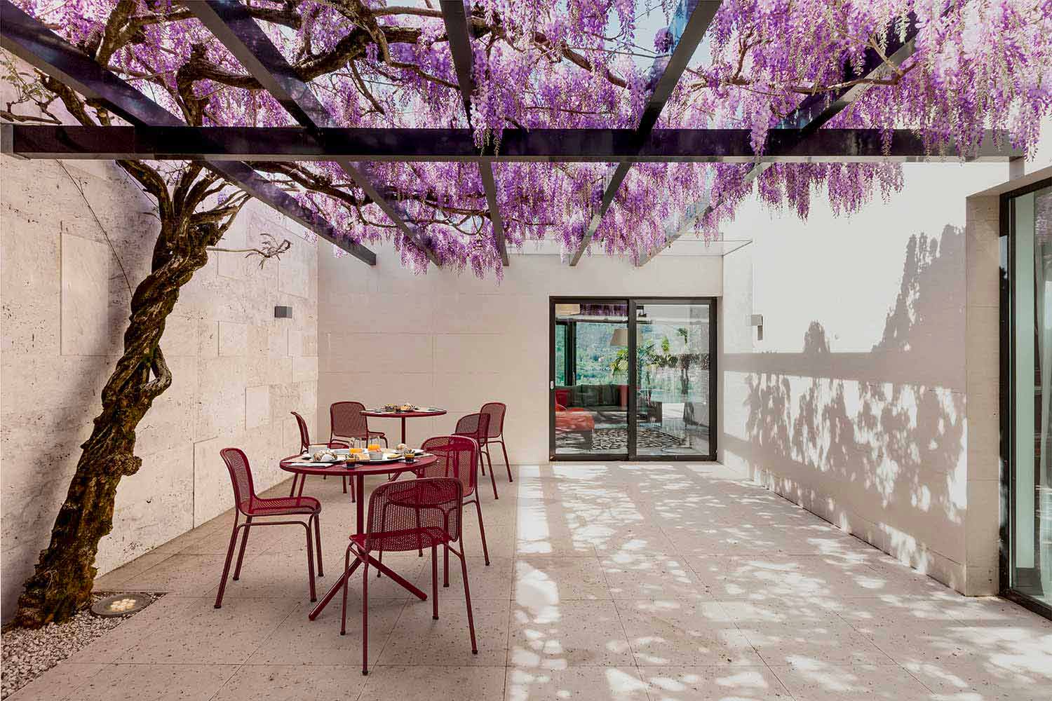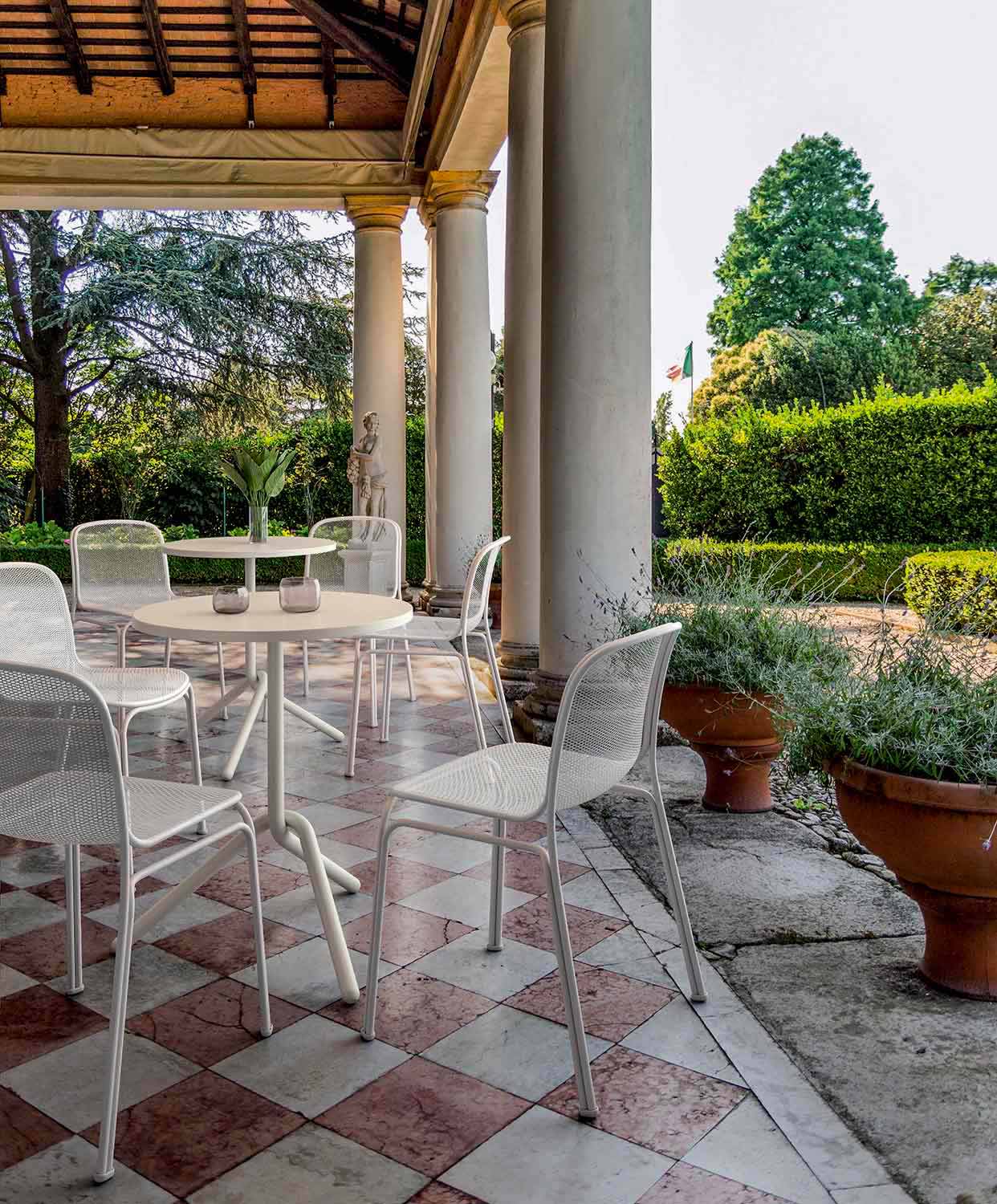 Prunella is een heerlijke tuinstoel volledig gemaakt van metaal en gaas die traditionele lijnen perfect combineert met een eigentijds design waardoor de stoel licht maar solide is. Het is ook extreem gemakkelijk te hanteren dankzij het licht verhoogde lichaam in vergelijking met de benen. Verkrijgbaar in 5 kleurvariaties waarmee het elke omgeving persoonlijkheid kan geven.