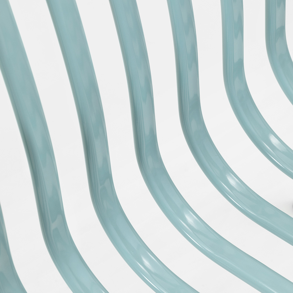 geverfd metaal, gekenmerkt door de rugleuning en zitting met