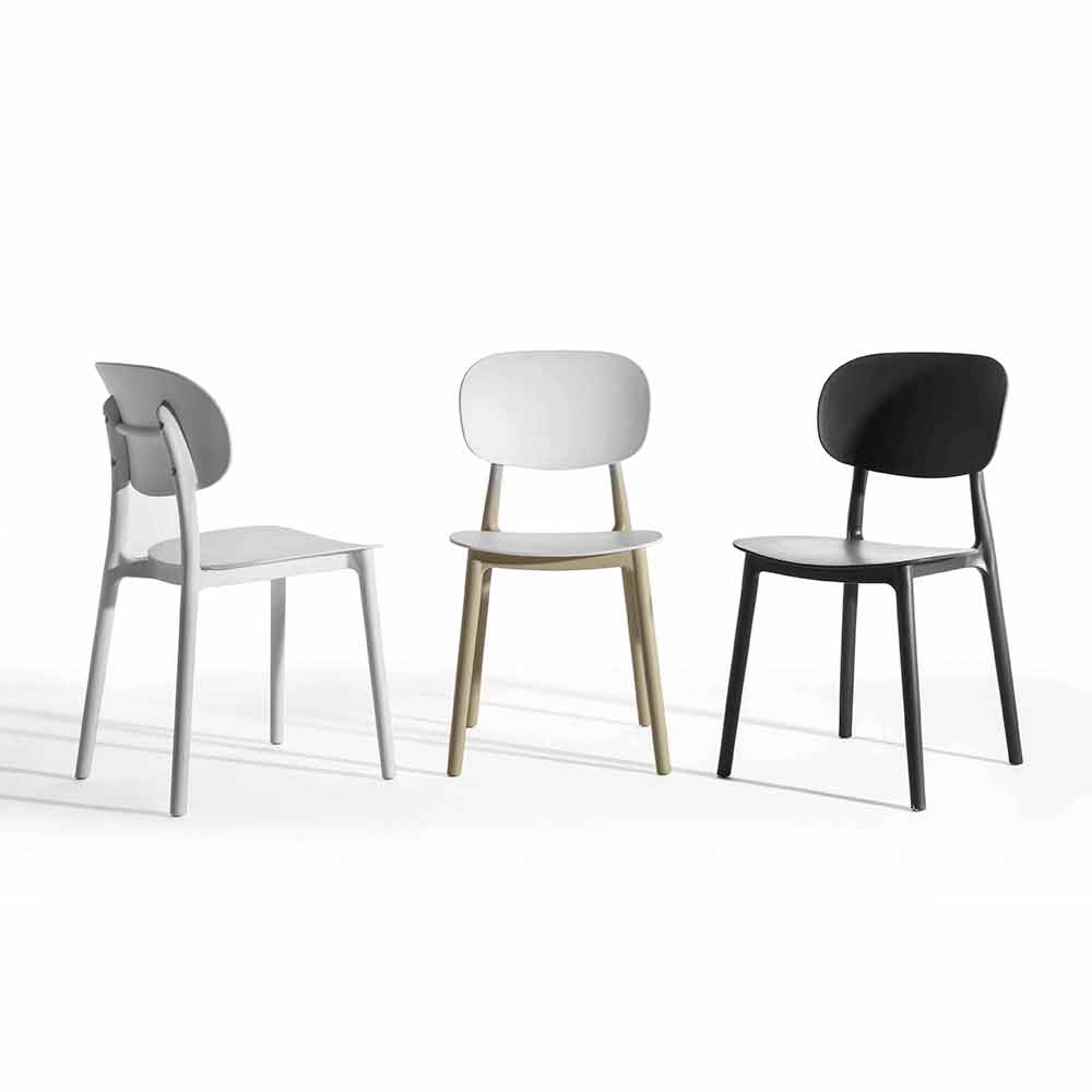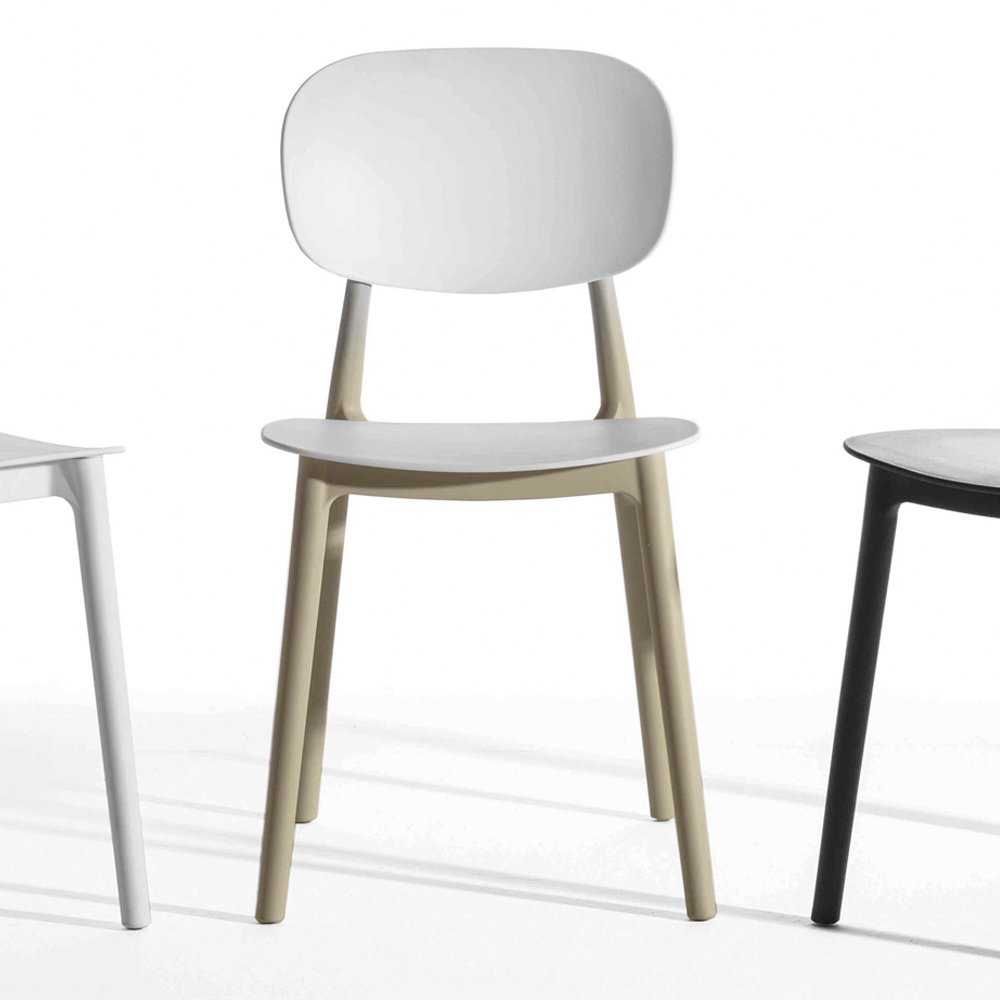 comfort . De structuur zorgt in feite voor een comfortabele en gastvrije stoel ondanks de eenvoud van het ontwerp en stelt u ook in staat om de stoelen tot maximaal 2 eenheden te stapelen, waardoor u de ruimte kunt optimaliseren wanneer dat nodig is. Bovendien weerspiegelen de neutrale kleuren die worden voorgesteld de