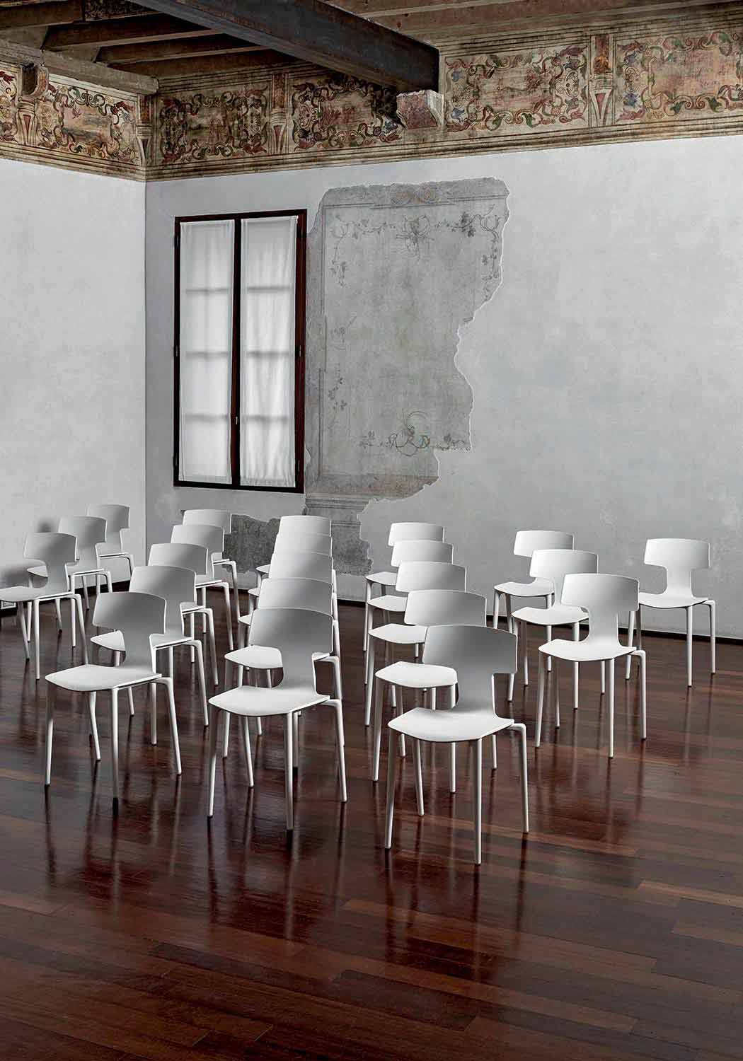 De Claribel stoel heeft een minimalistisch design maar past zich dankzij de 7 beschikbare kleuren perfect aan elke omgeving aan. Dankzij het gebruikte materiaal, polypropyleen, vertoont deze stoel een lichtheid die wordt onderstreept door zijn dynamische en ongebruikelijke kenmerken. Claribel is ook een stapelbare stoel met maximaal 6 units om de ruimte te maximaliseren.