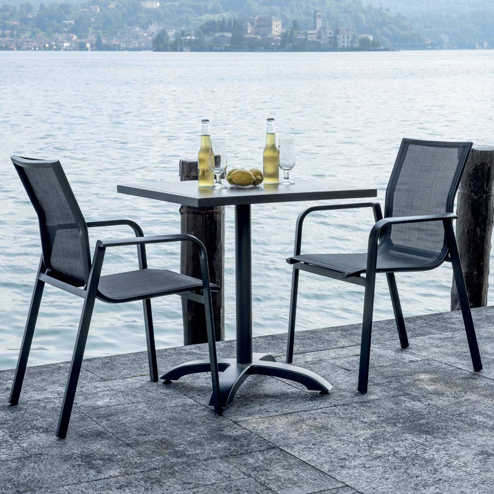 Combineer moderne stijl en functionaliteit met deze aluminium en textilene stoel, ontworpen voor comfort en duurzaamheid in elke buitenomgeving. De lichte maar stevige aluminium structuur zorgt voor duurzaamheid en onberispelijke weersbestendigheid, waardoor het ideaal is voor terrassen, tuinen of contractruimtes.