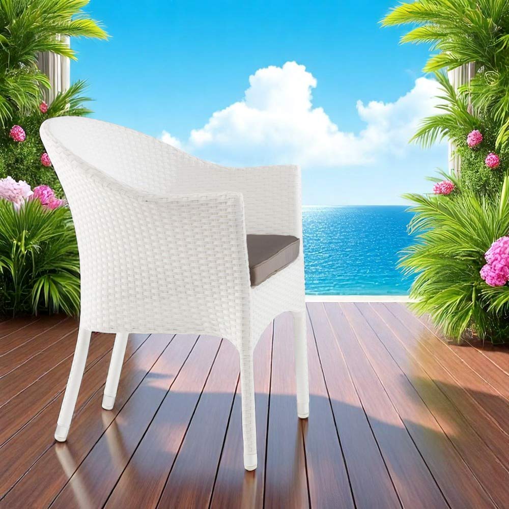 De witte, geweven rieten bekleding zorgt voor een elegant en luchtig visueel effect, perfect voor wie houdt van een natuurlijke maar verfijnde stijl. Het stapelbare ontwerp maakt het uiterst functioneel en ruimtebesparend , ideaal voor zowel residentiële als projectmatige omgevingen, zoals hotels , restaurants of buitenlocaties .
