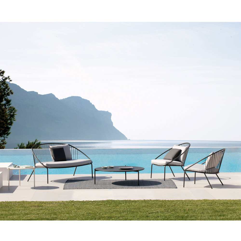 bestand is tegen corrosie door weersinvloeden zoals zuur van regen of zout, waardoor de bank een perfect meubelstuk is voor elke open ruimte.
