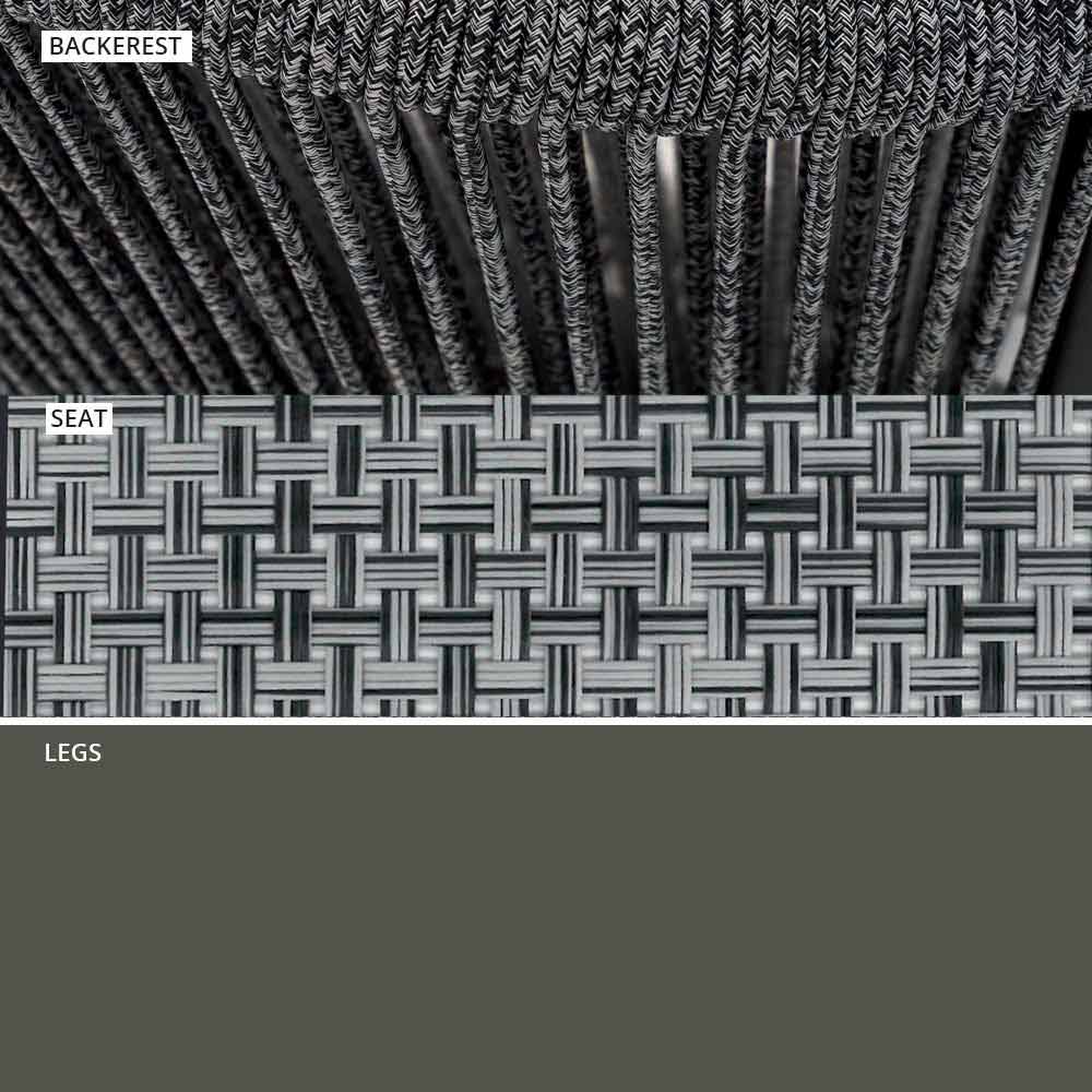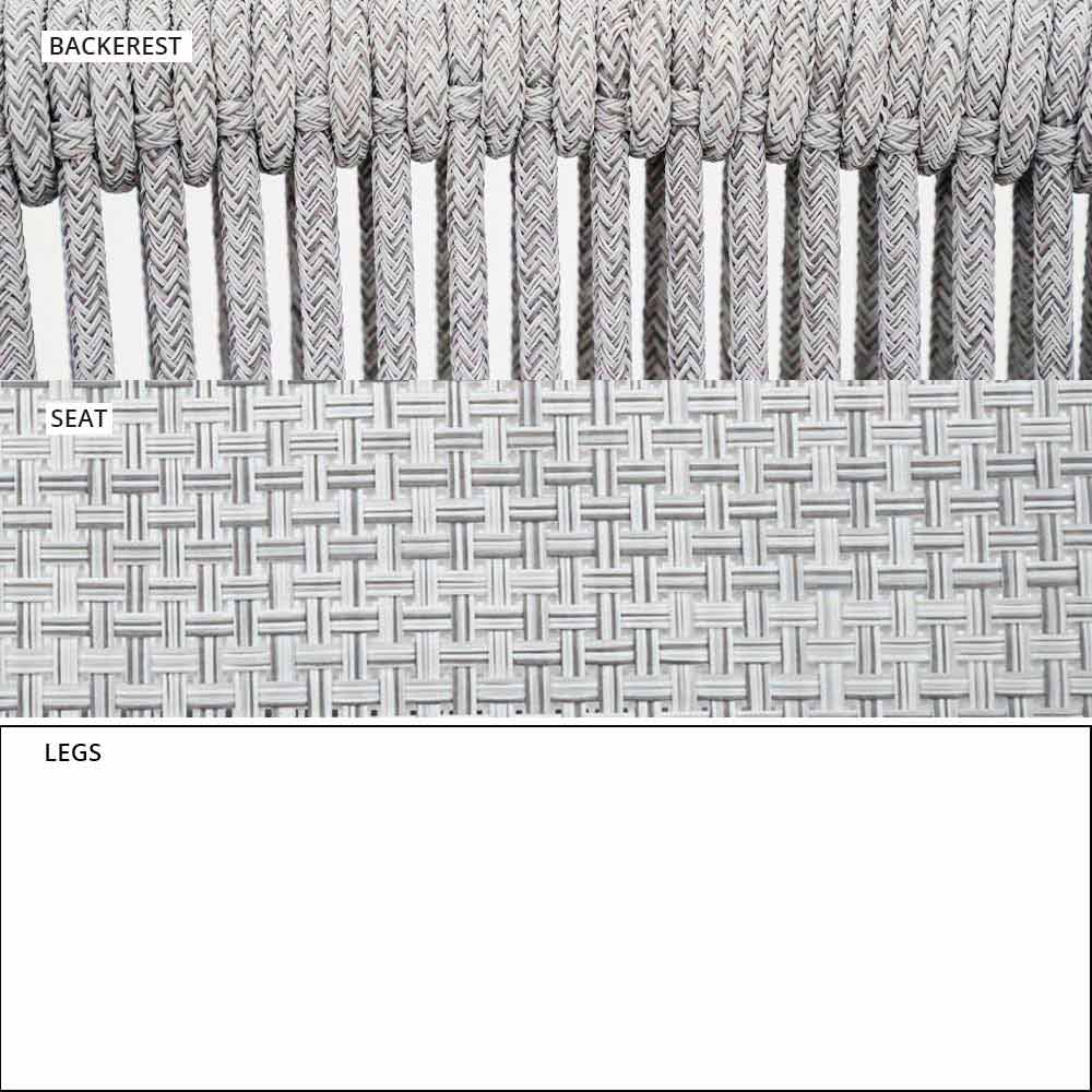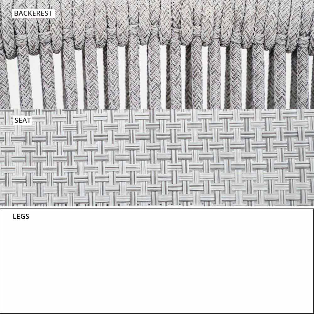 - grijze aluminium structuur - as ver # tex zitting - as var # tex rug.