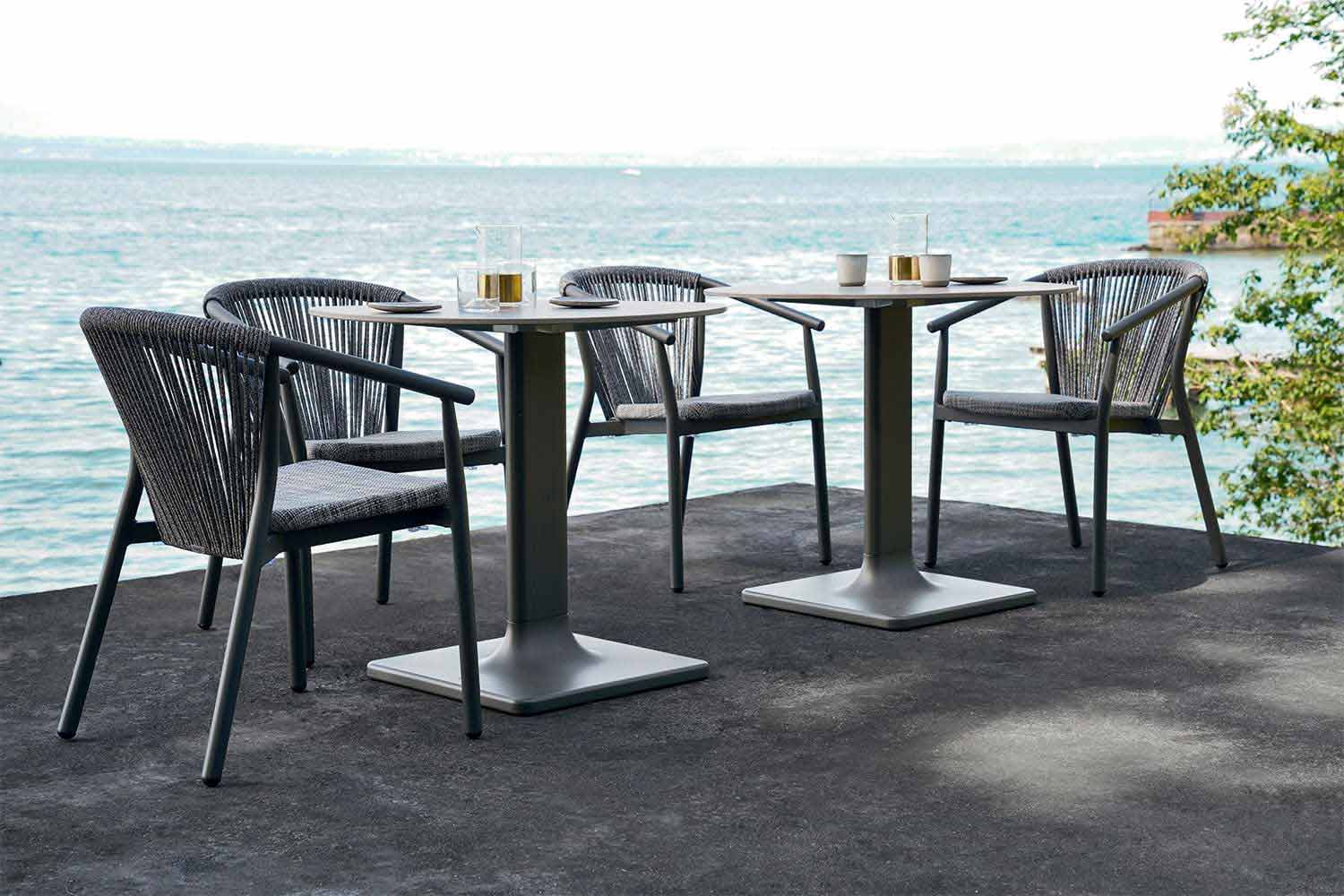 Onderhoud: De collectie is bestand tegen zonlicht en regen. Wij raden regelmatig onderhoud aan, en bijzondere aandacht voor de bescherming van de artikelen in geval van ongunstige weersomstandigheden (ijs, hagel, plotselinge temperatuursveranderingen, vochtigheid, aanhoudende, verzengende hitte of extreme kou). De duurzaamheid en integriteit van deze items zijn afhankelijk van de zorg waarmee ze worden onderhouden. Voor aluminium- en staalproducten, zelfs als ze worden beschermd door behandelingen en afwerkingen die geschikt zijn voor gebruik buitenshuis, is het essentieel om te voorkomen dat water in het product zelf stagneert. In feite hebben alle artikelen technische gaten die nodig zijn voor het aanbrengen van beschermende behandelingen en afwerkingen. Het binnendringen van water in die gaten en de stagnatie ervan kunnen roest veroorzaken aan de interne delen van de leidingen.